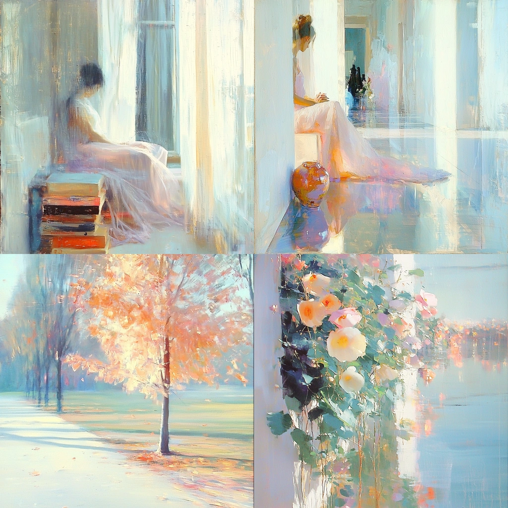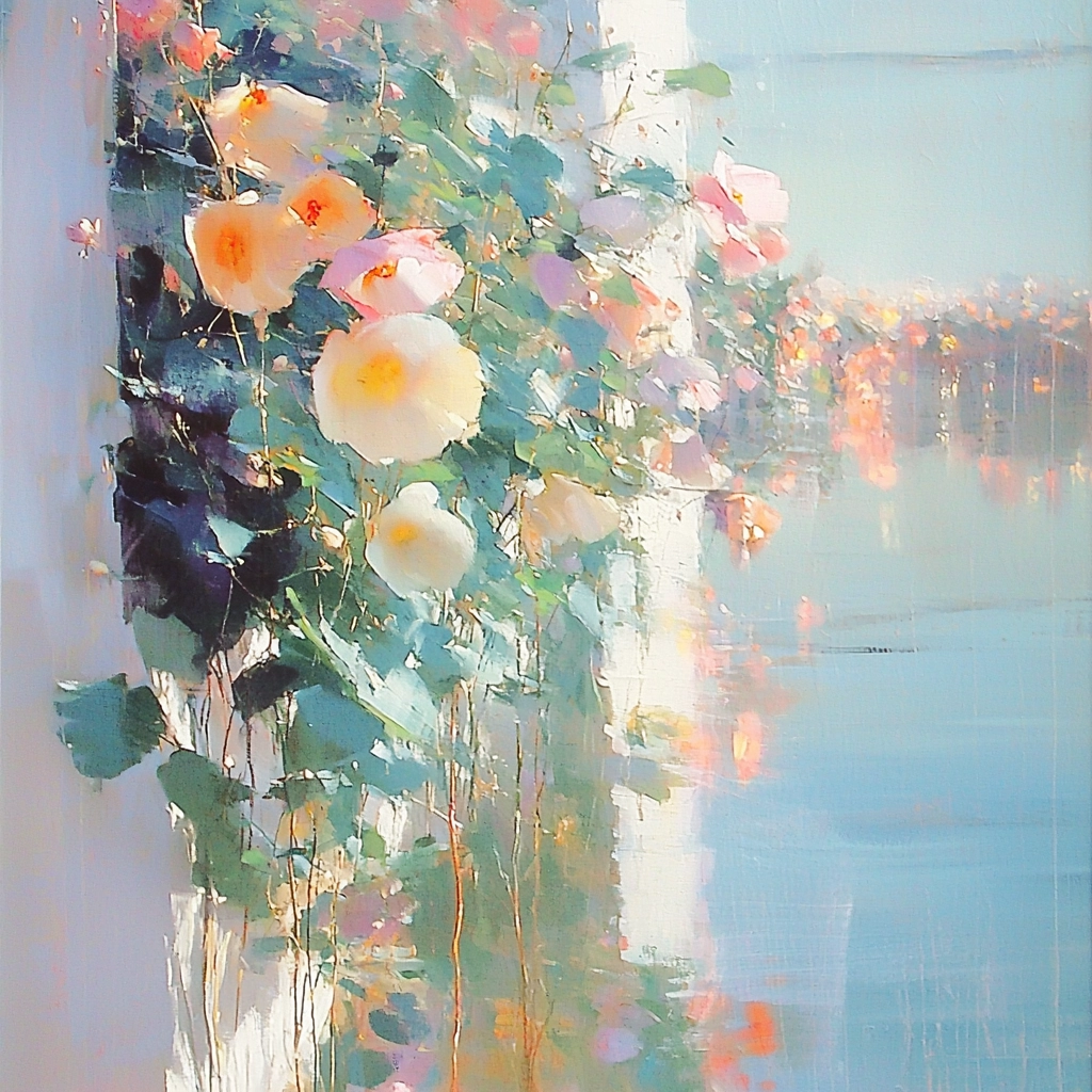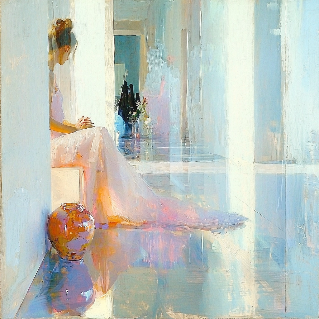 The use of soft illumination and diffused light enhances the pastel palette, with gentle transitions in color. The textures are seamlessly integrated, creating a smooth spatial ambiance with a touch of fluidity.
