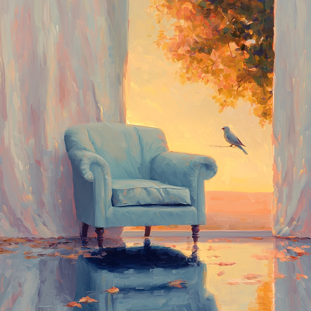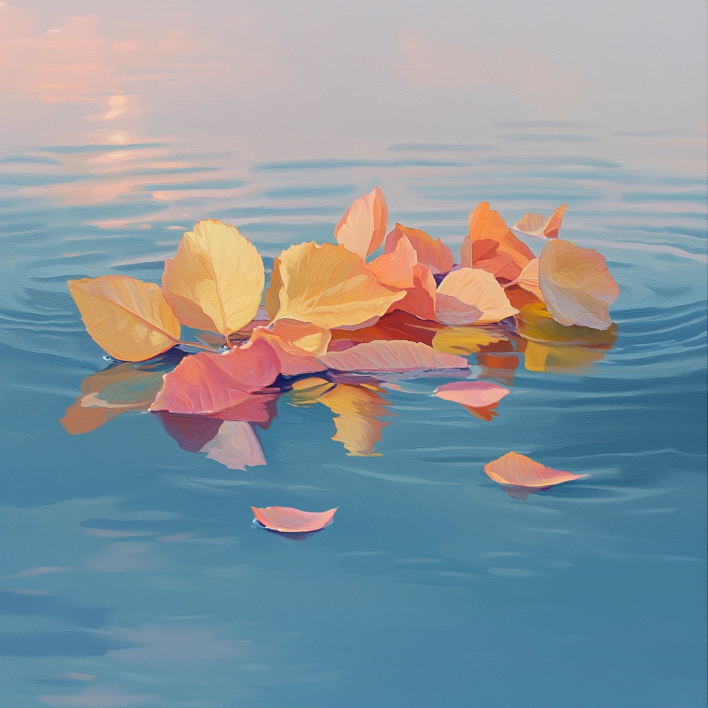 The images utilize soft lighting with delicate pastel tones creating a gentle transition between elements. There's a sense of depth achieved through perspective, while textural strokes impart a fluid yet firm character to the artworks.