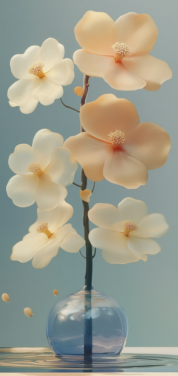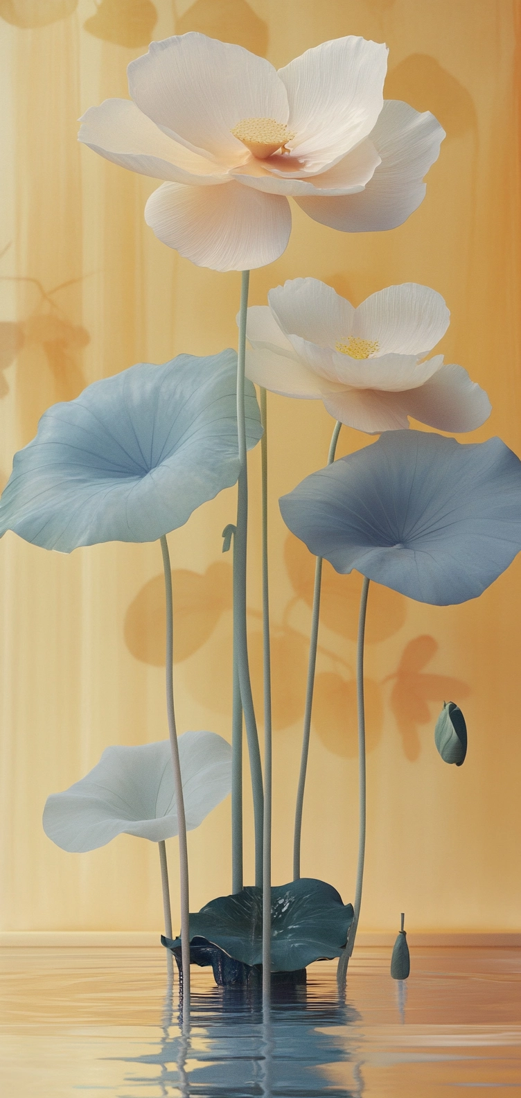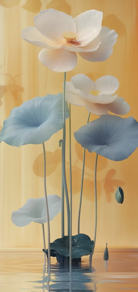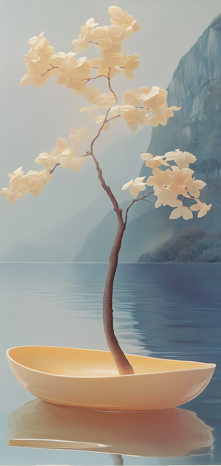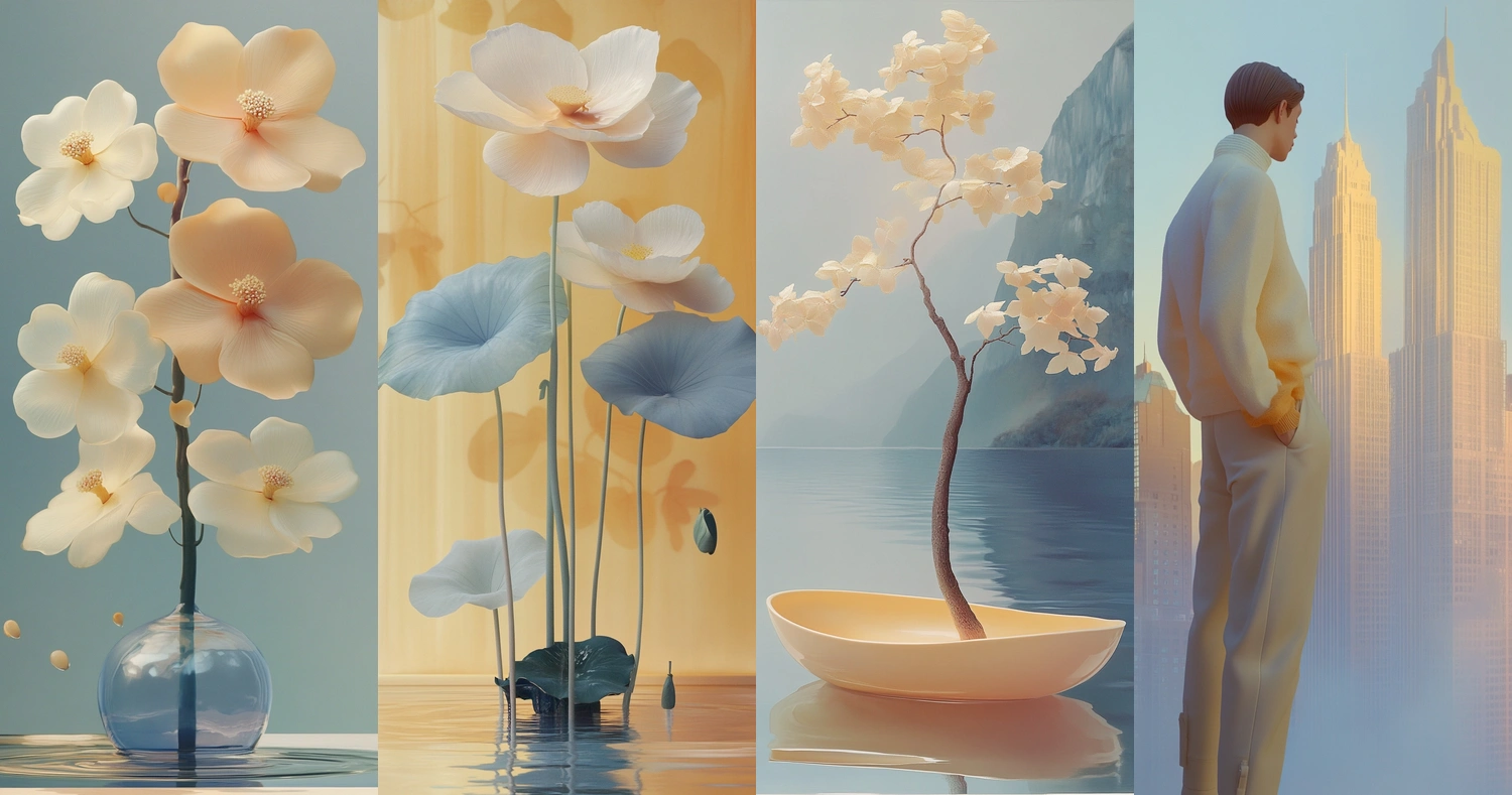 Featuring gentle lighting that emphasizes subtle texture contrasts, smooth blending of pastel hues, and an illusion of tranquil space enhanced by a balanced composition.