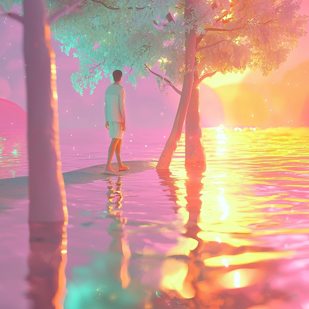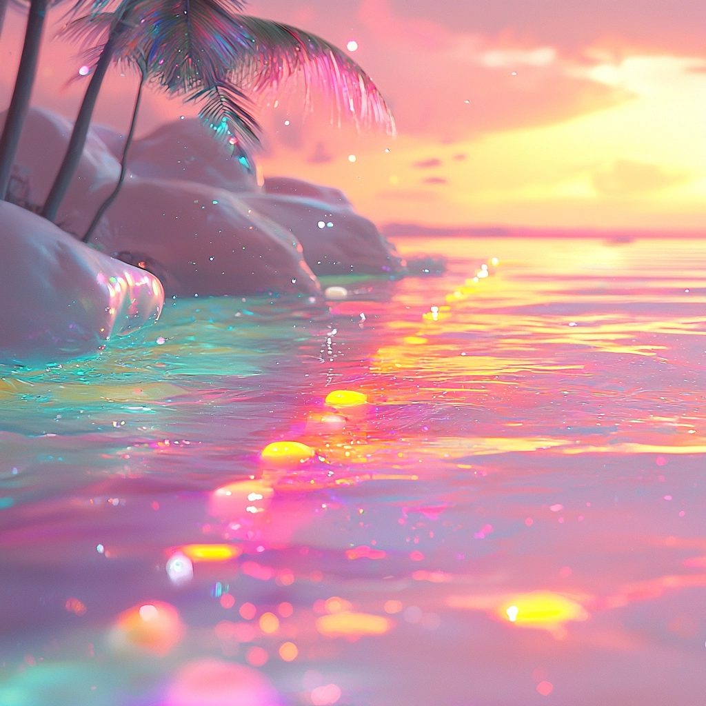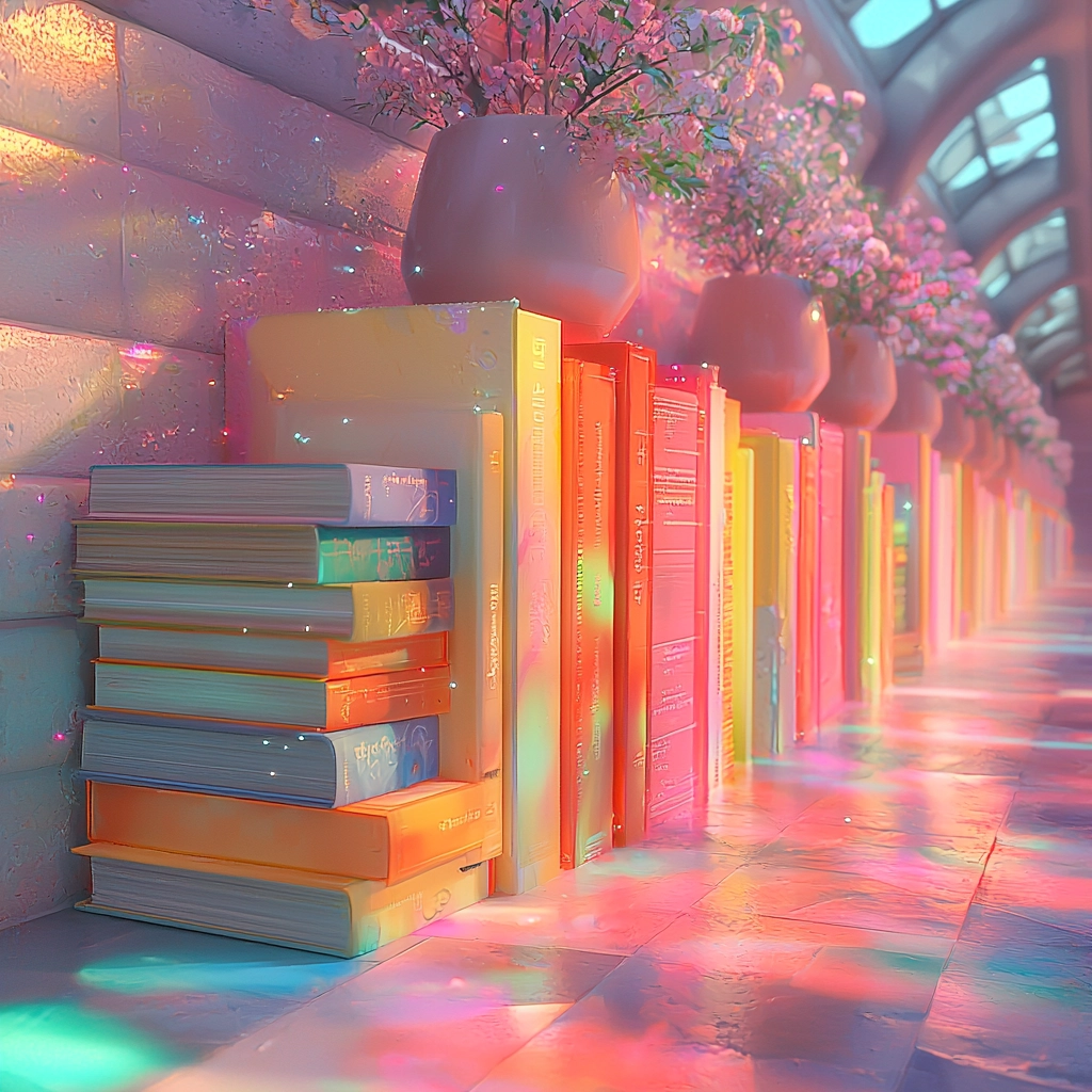 A vibrant interplay of warm pinks, yellows, and cool blues creates a vivid yet gentle glow.