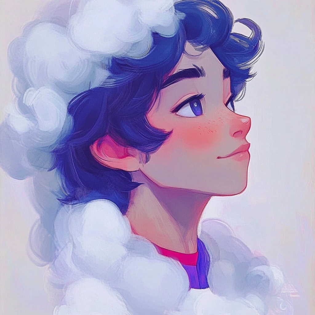 The soft lighting enhances both depth and the smooth texture, lending a pastel impression. Delicate blue and purple hues create subtle contrast alongside vibrant red accents, contributing to a sense of realism in the composition.