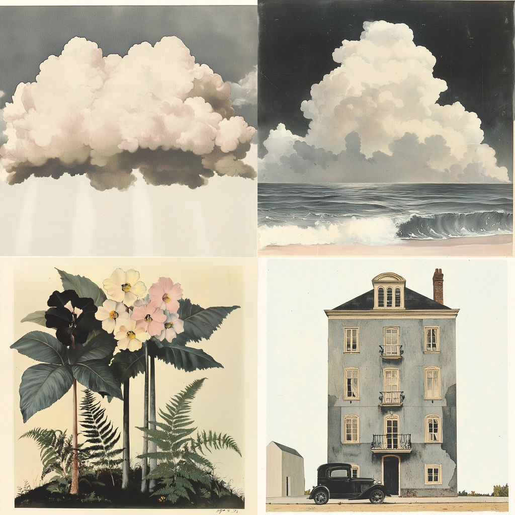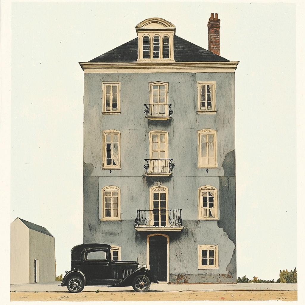 The lighting is evenly diffused, casting soft shadows that enhance the depth. The colors are pastel and muted, presenting a consistent tonality. There is a precise texture, contributing to a realistic portrayal with a smooth finish.
