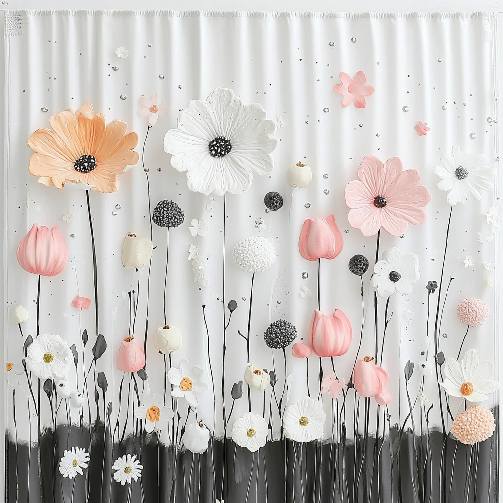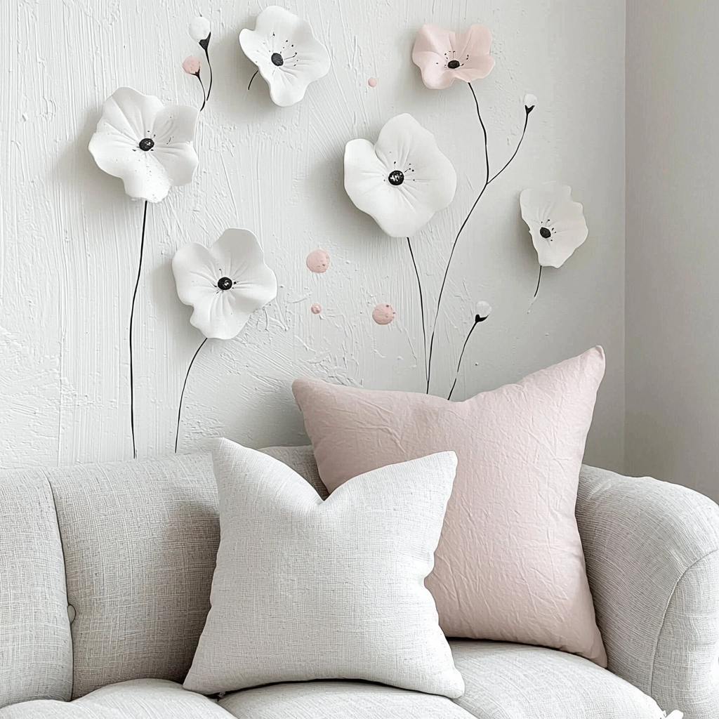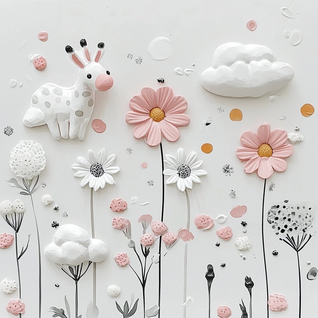 The soft illumination enhances subtle pastel hues against a neutral gray background, while textures offer a tactile quality to the surface. The arrangement creates depth perception and highlights gentle contrasts.