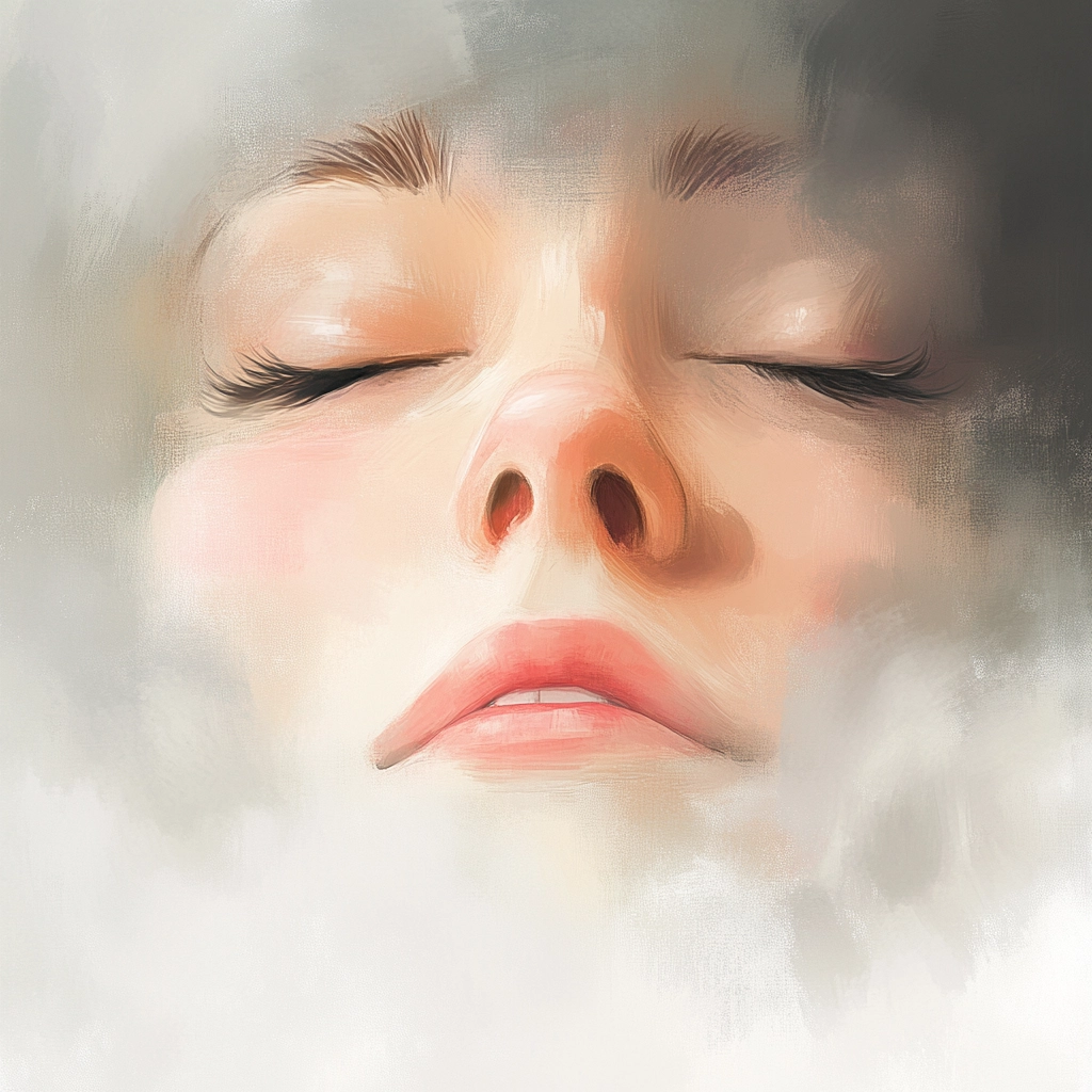 The composition features muted colors, achieving a soft textural quality through delicate brushwork with blended edges.