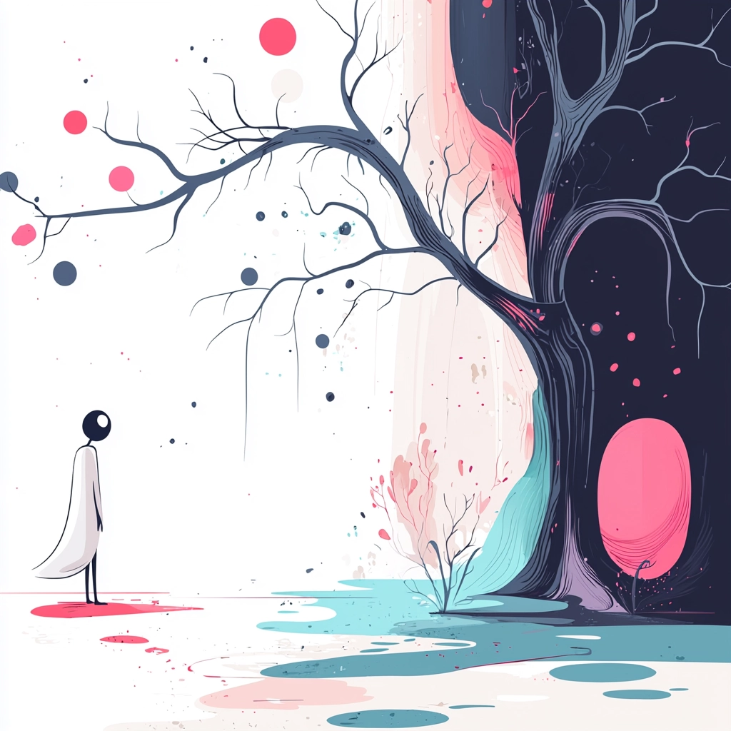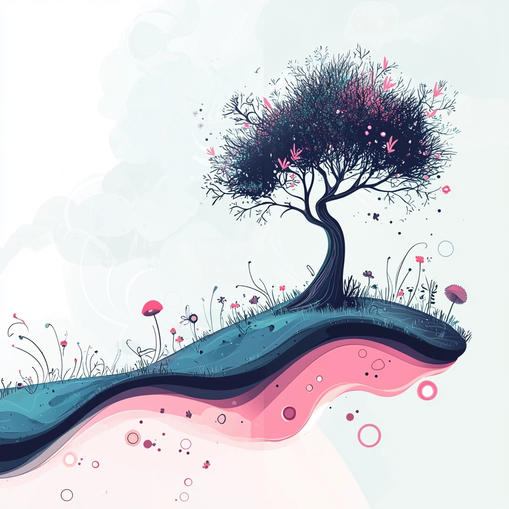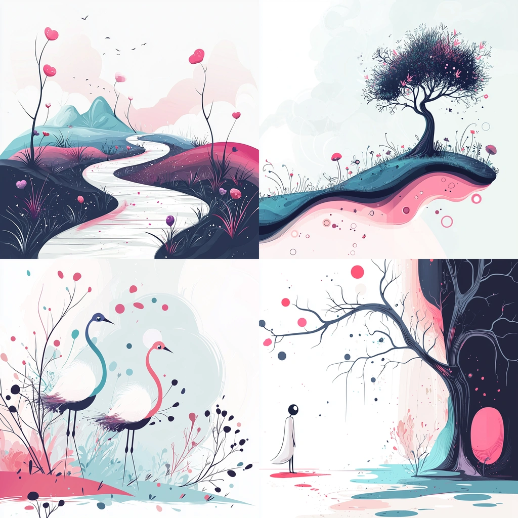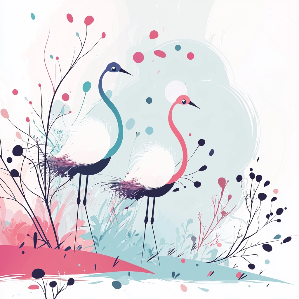 The style employs soft, diffused lighting and pastel colors that blend smoothly, creating a sense of depth and gentle motion. The lines are gracefully curved, providing a harmonious aesthetic with delicate textures.