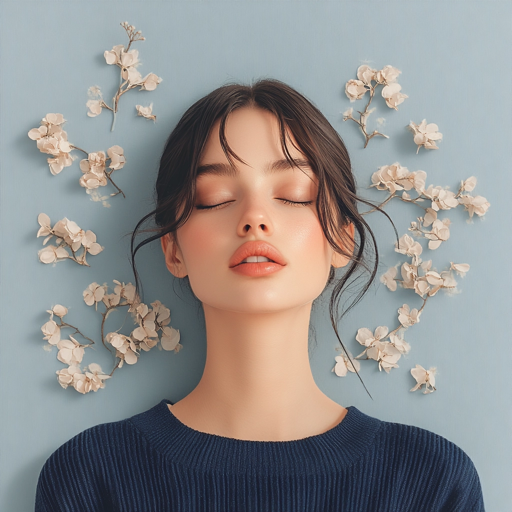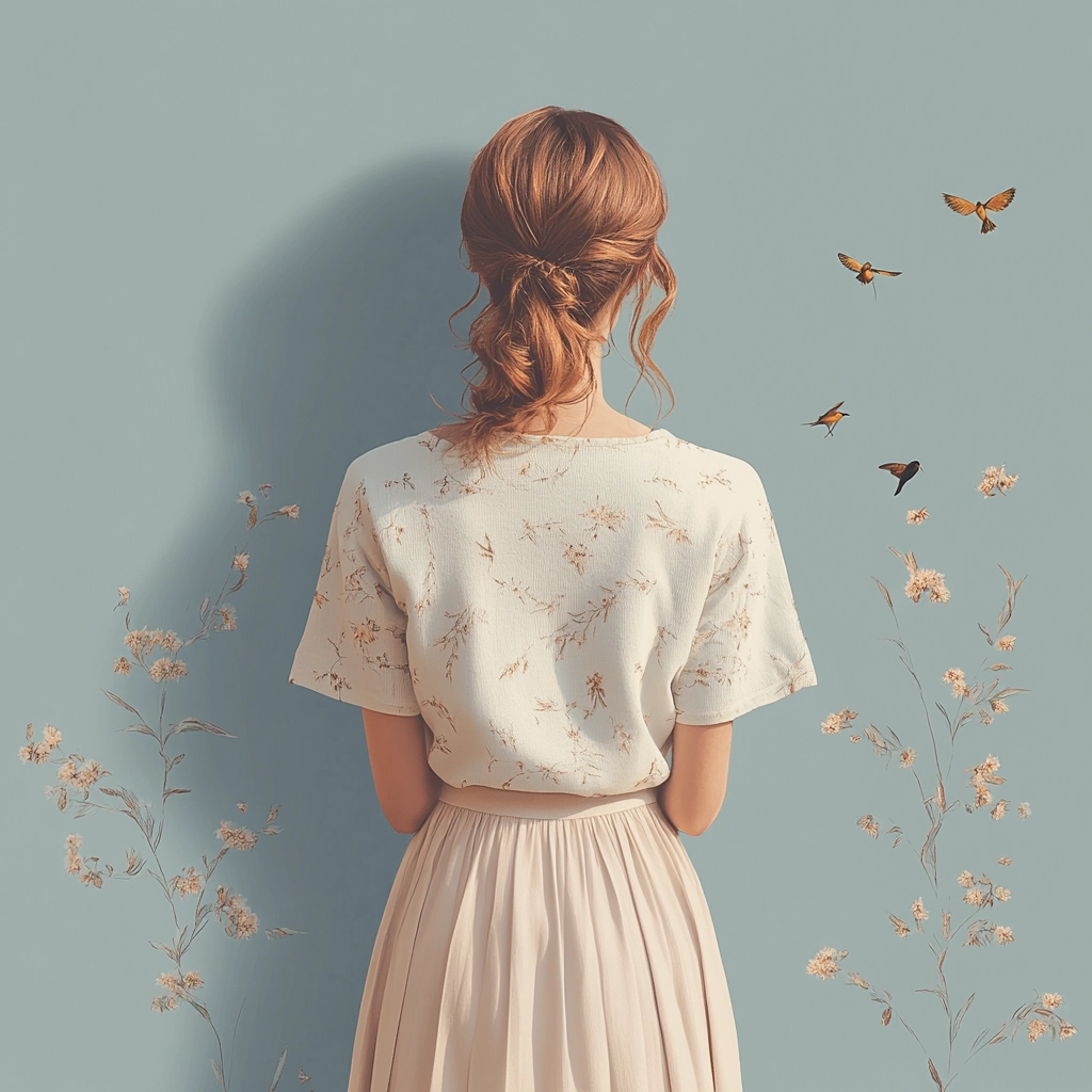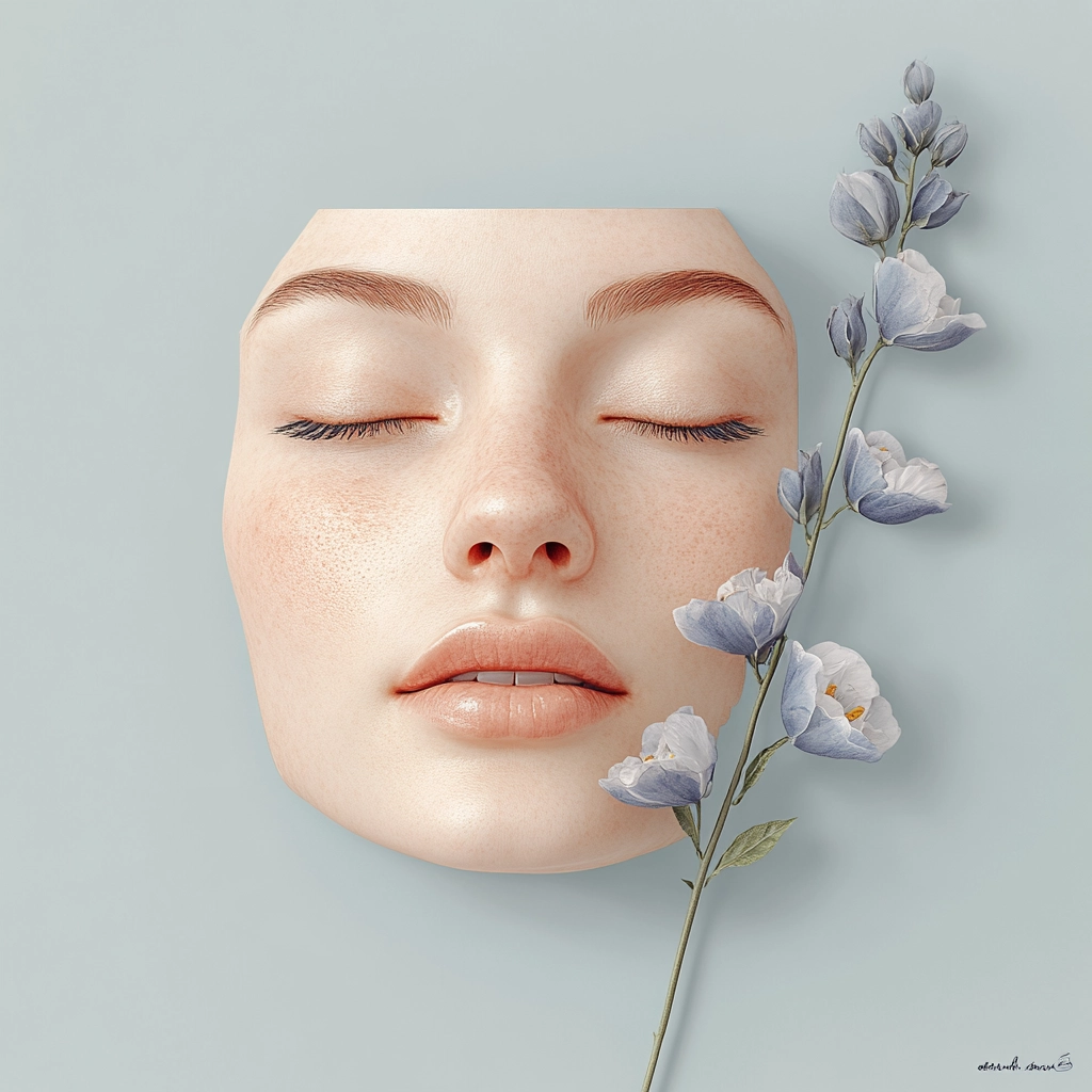 The use of pastel tones with delicate shading creates a smooth surface texture. Lighting is subtle, enhancing the gentle feel of the scene, while spatial sense remains minimal, with objects closely integrated into a unified theme of elegant simplicity.
