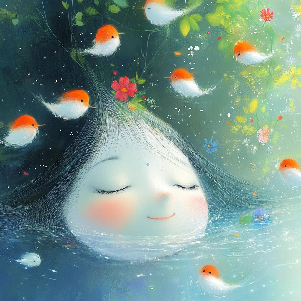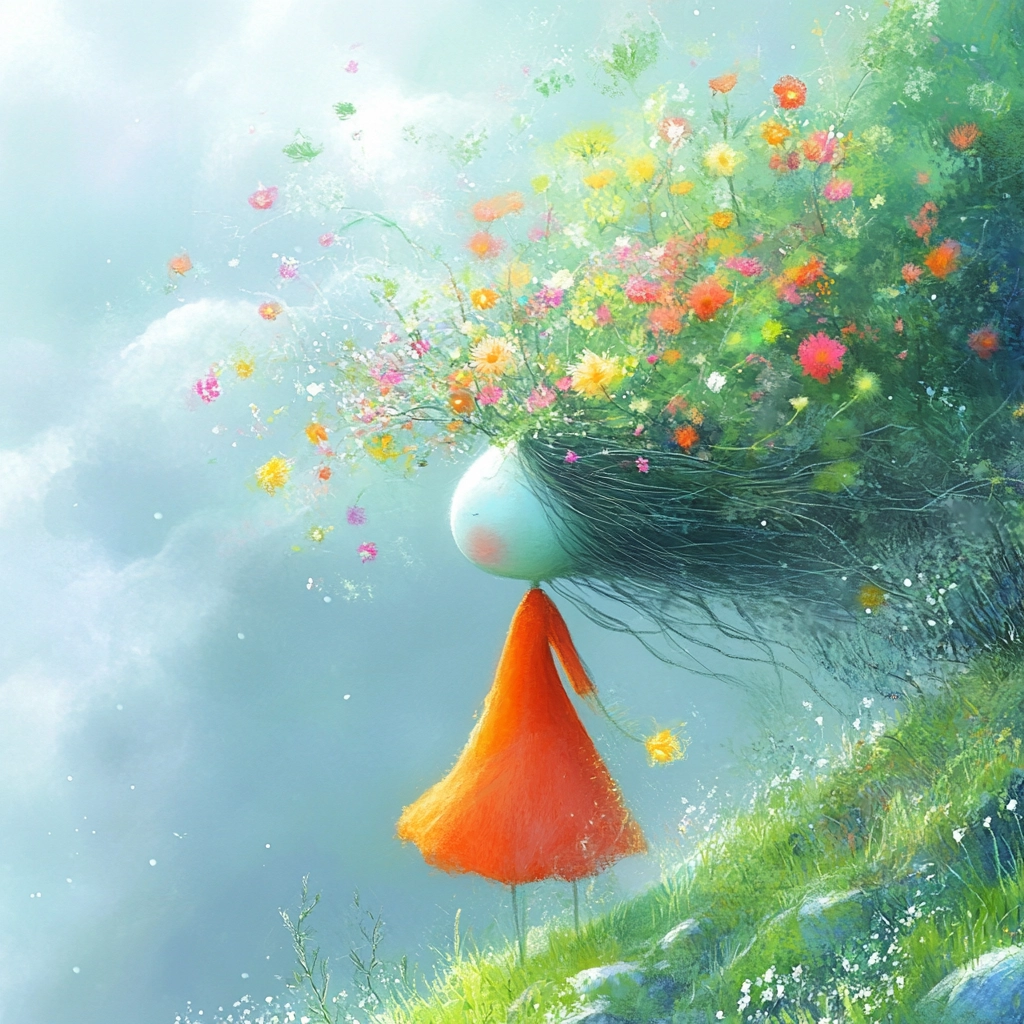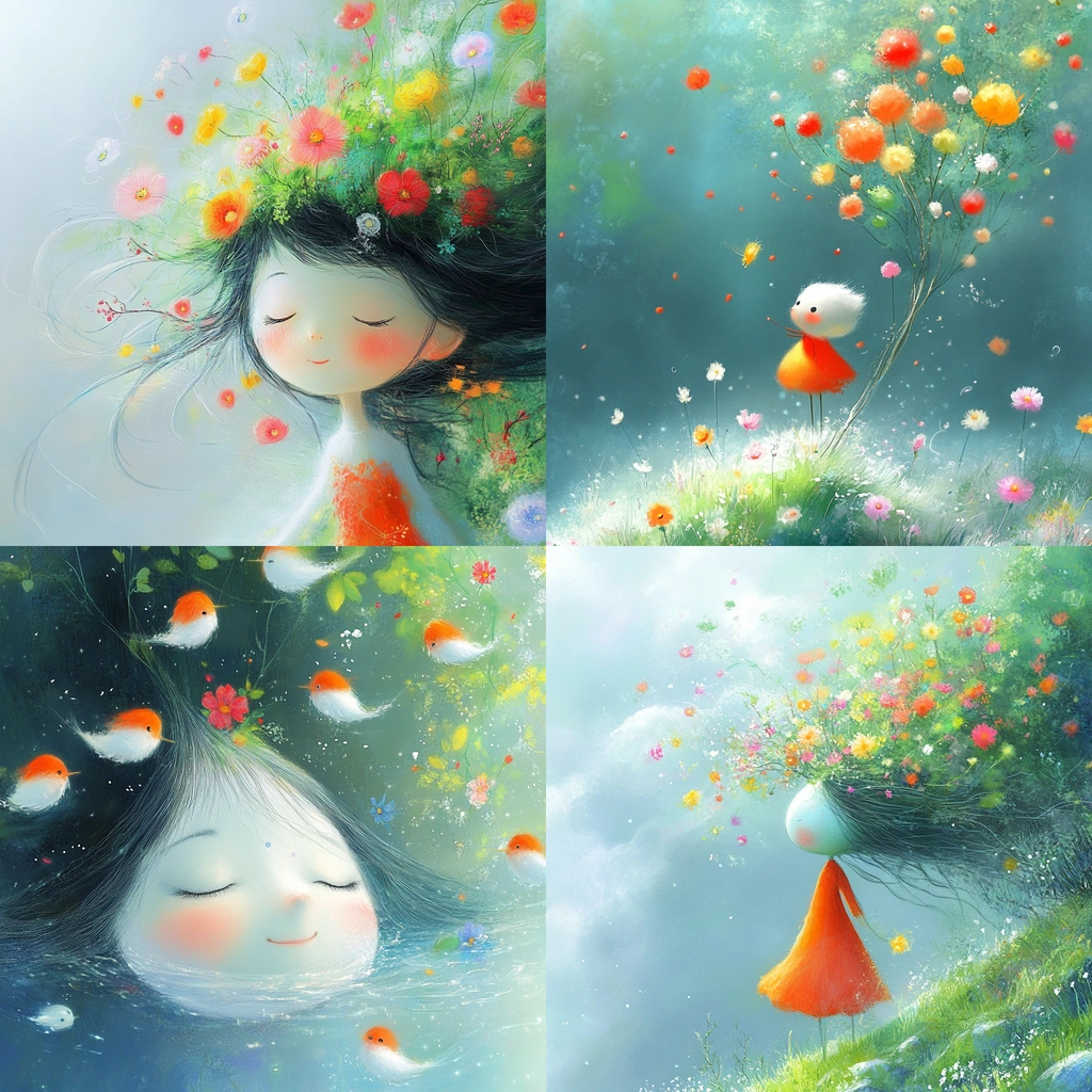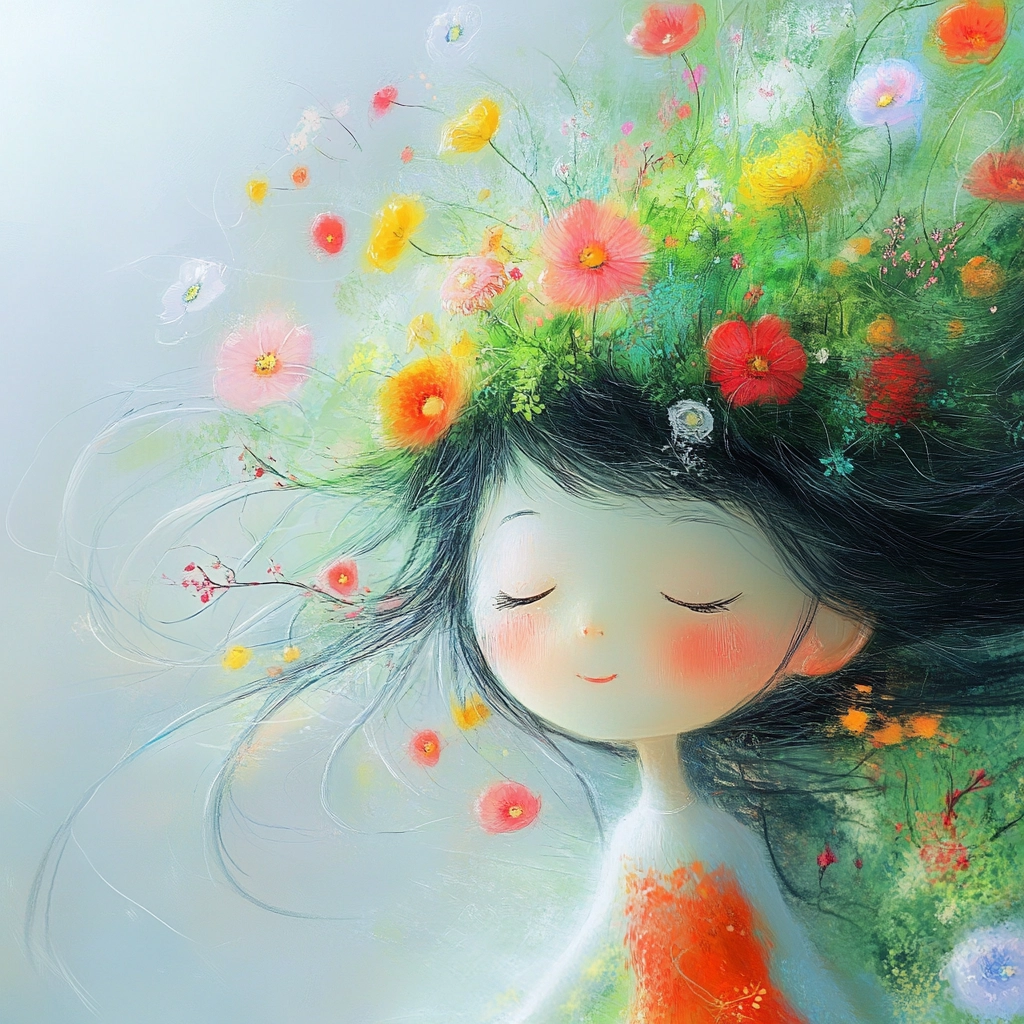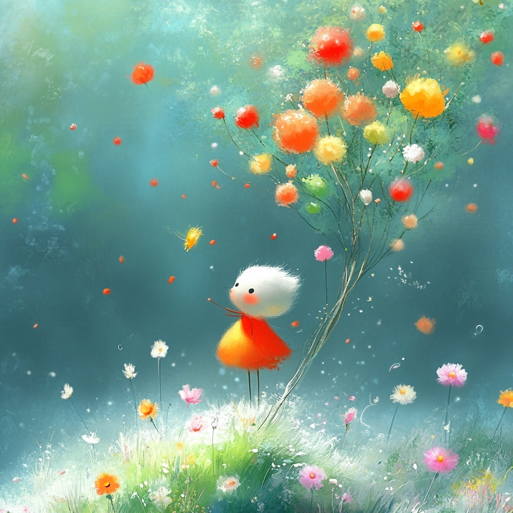 The use of soft textures and bright colors creates a vibrant yet gentle visual experience.