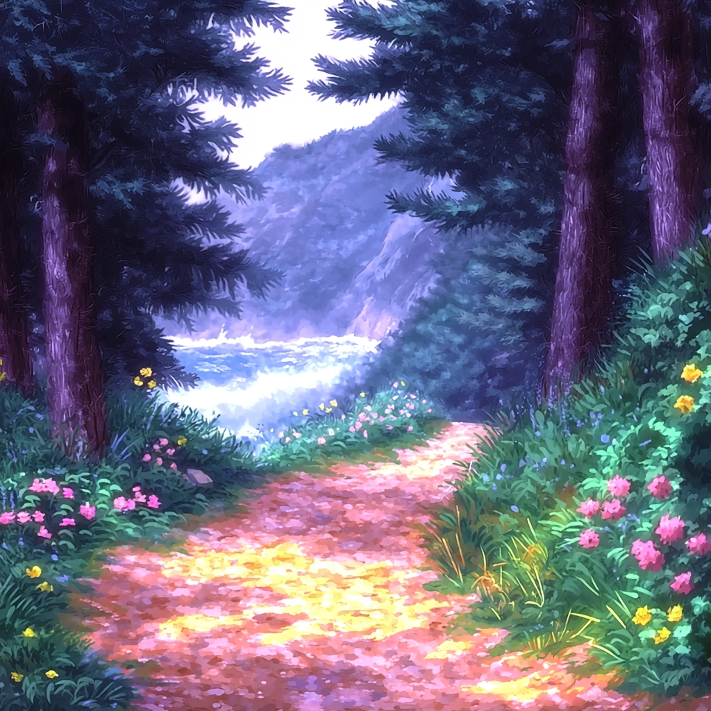 The composition features lush tones with a harmonious interplay of soft textures and highly detailed landscapes.