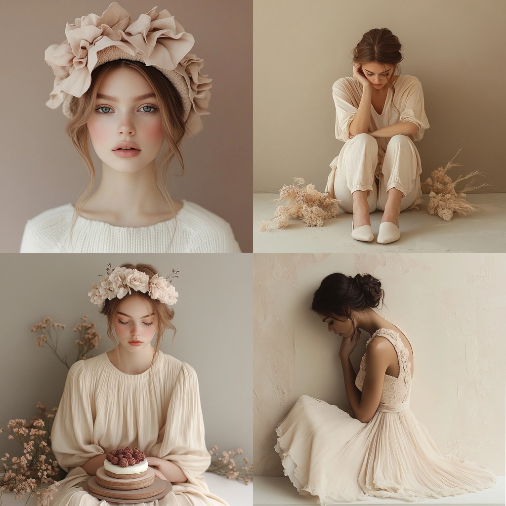 A delicate balance of soft pastel hues with gentle lighting and creamy textures.