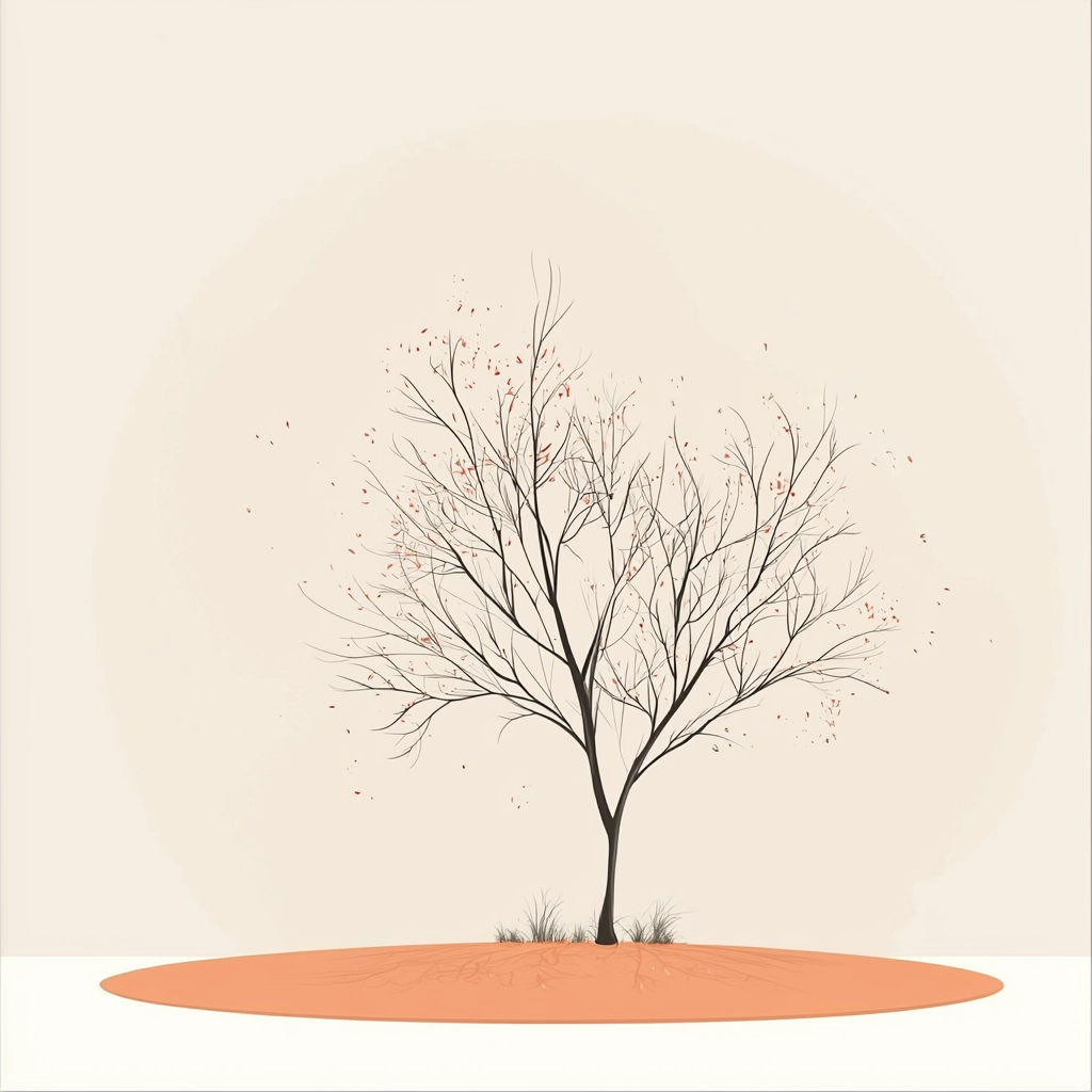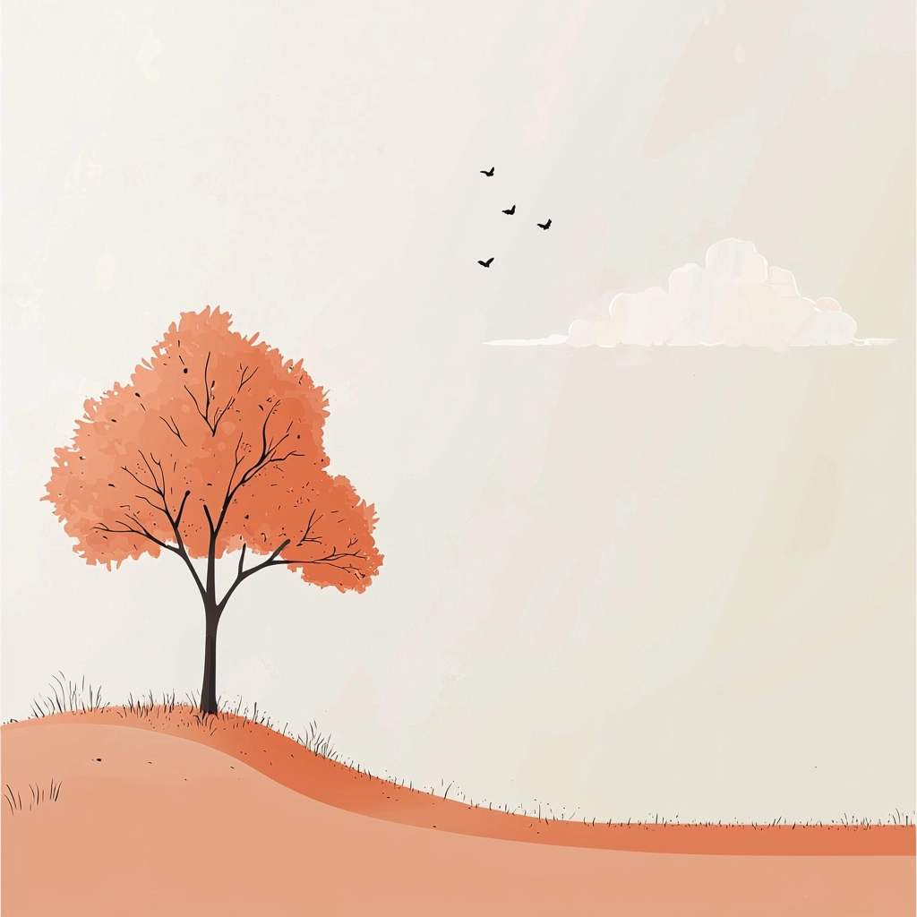 Soft beige tones with gentle orange accents create a harmonious composition with clean lines and minimal details.