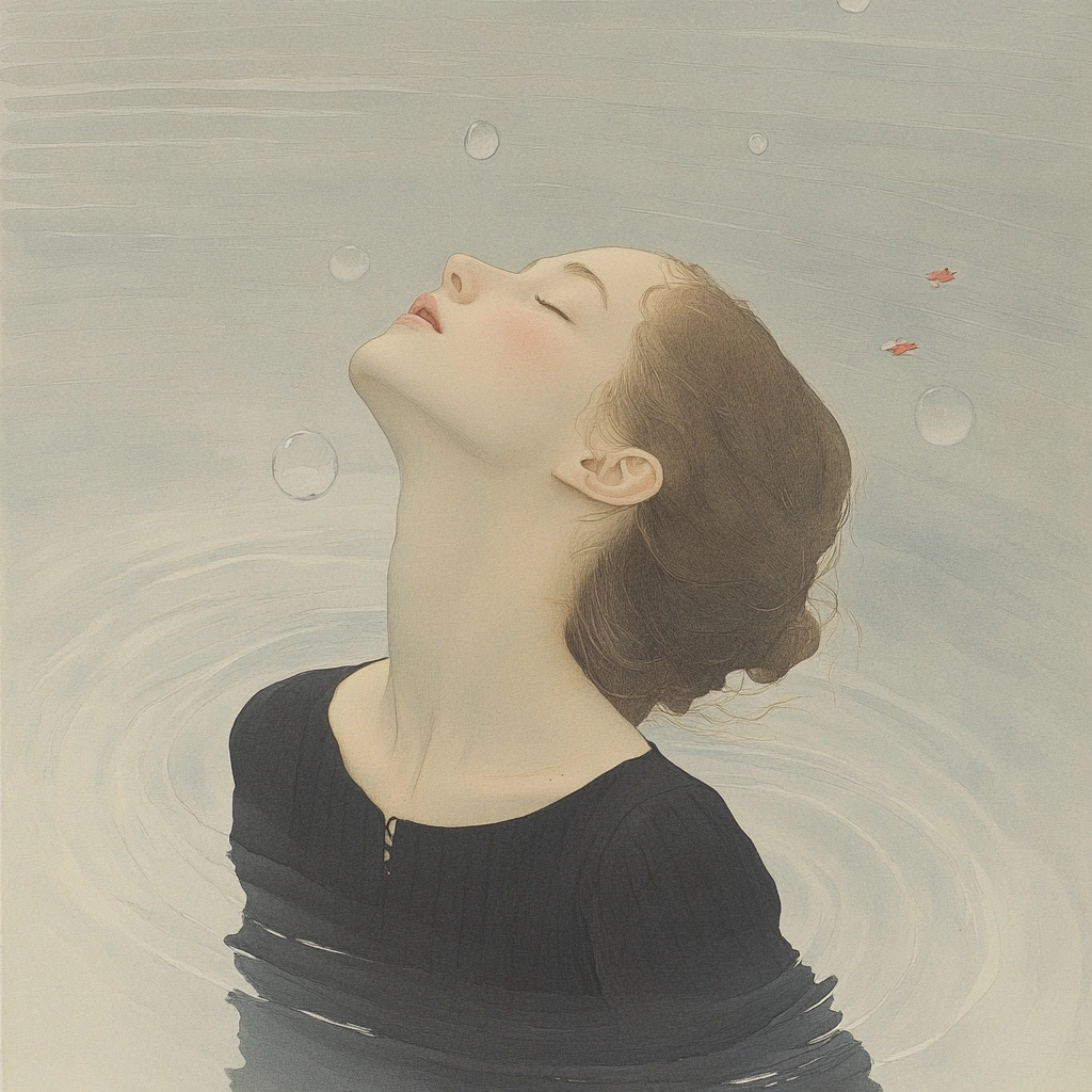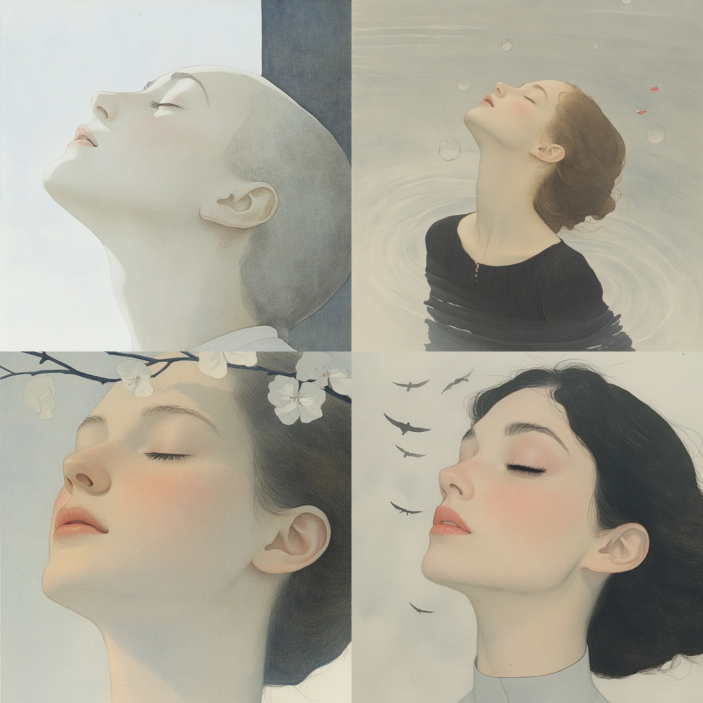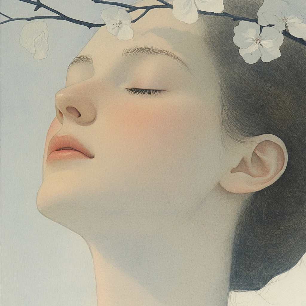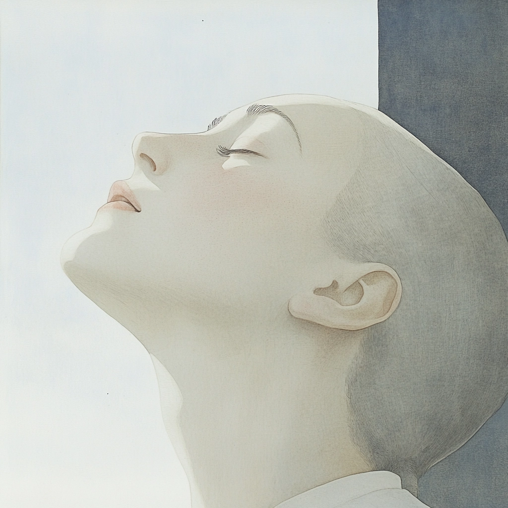 The use of subdued lighting creates a gentle atmosphere, accentuating the soft pastel hues and smooth gradients. The spatial arrangement relies on a minimalistic approach, giving prominence to the interplay of light and shadow. The textures are rendered with fine, almost imperceptible brushstrokes, enhancing the sense of calm.