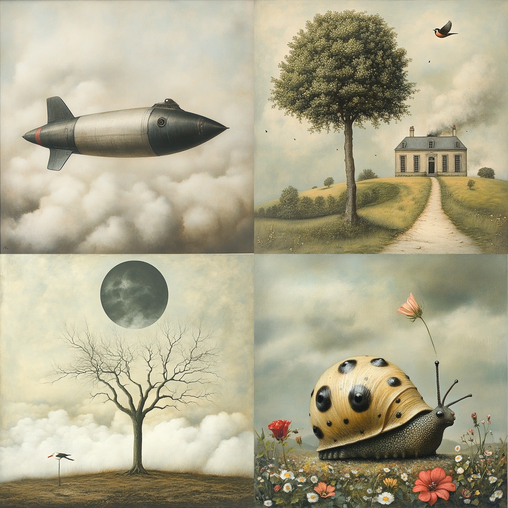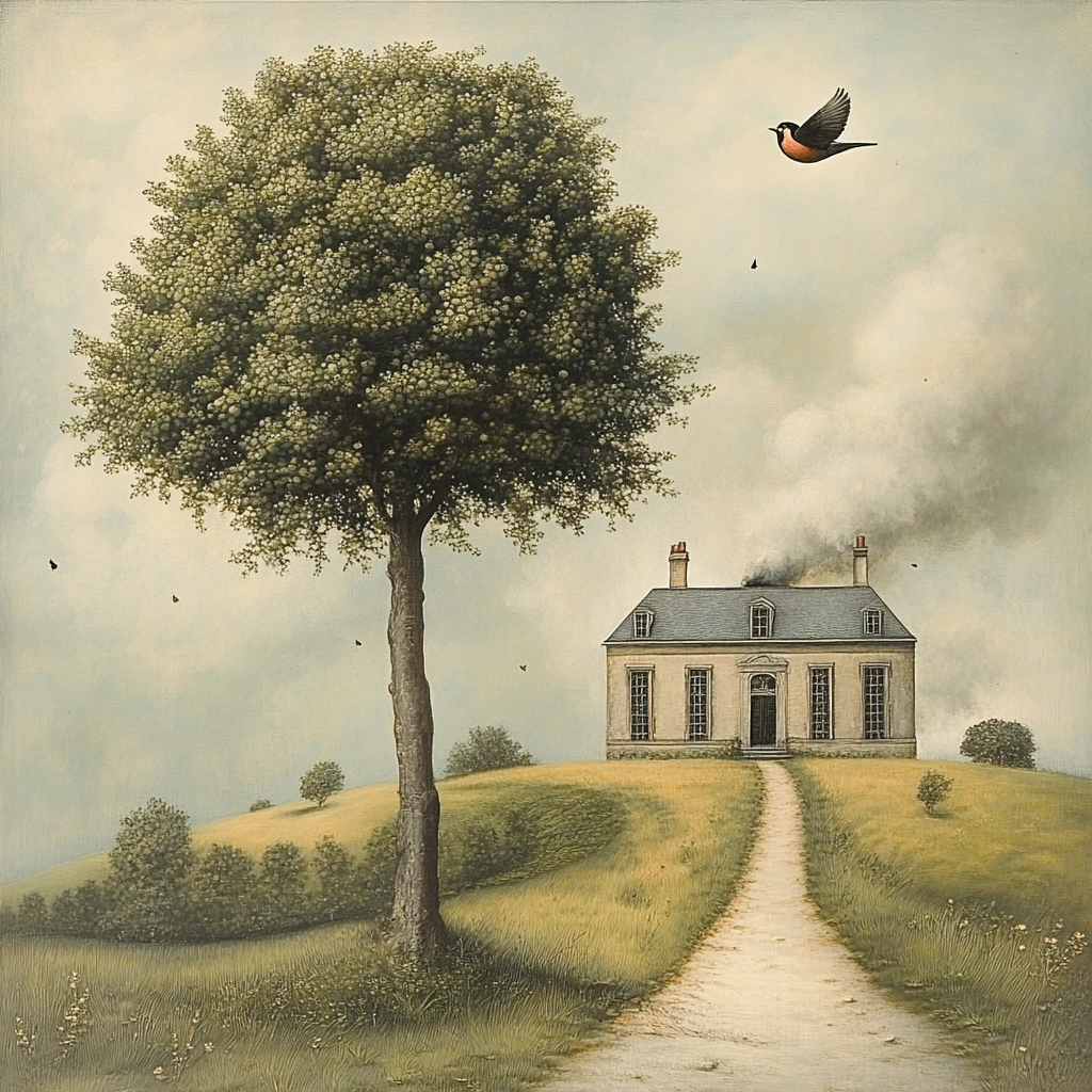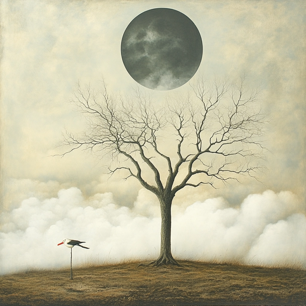 Muted tones and surreal elements create intrigue.