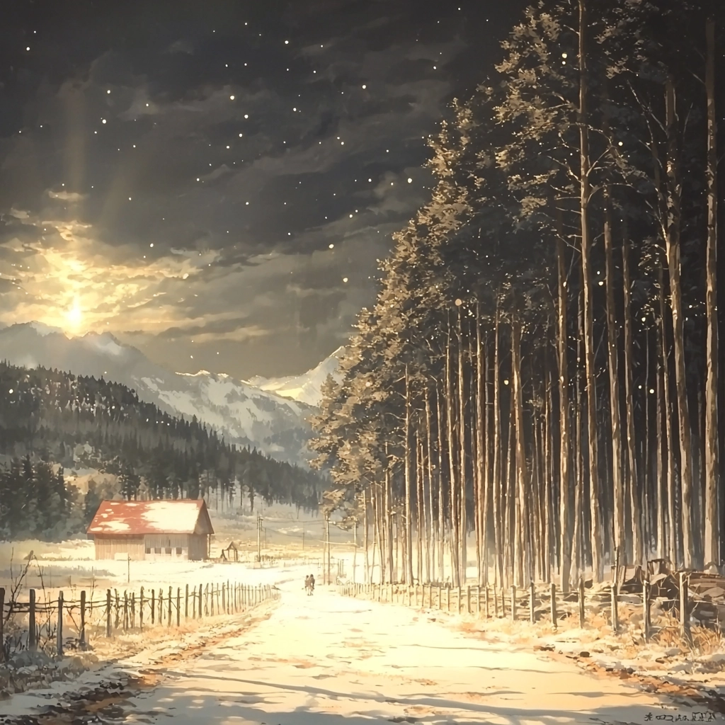 Lighting is used to create depth, casting shadows that highlight the textures and details of nature. The colors are earthy and warm, contributing to a sense of realism, while the textures emphasize natural elements.