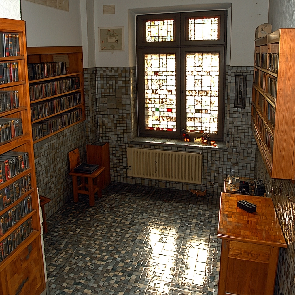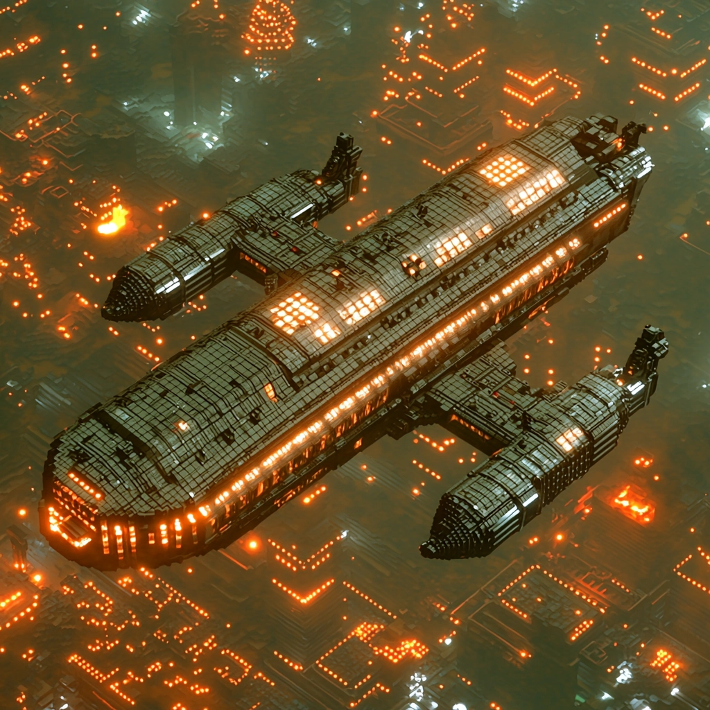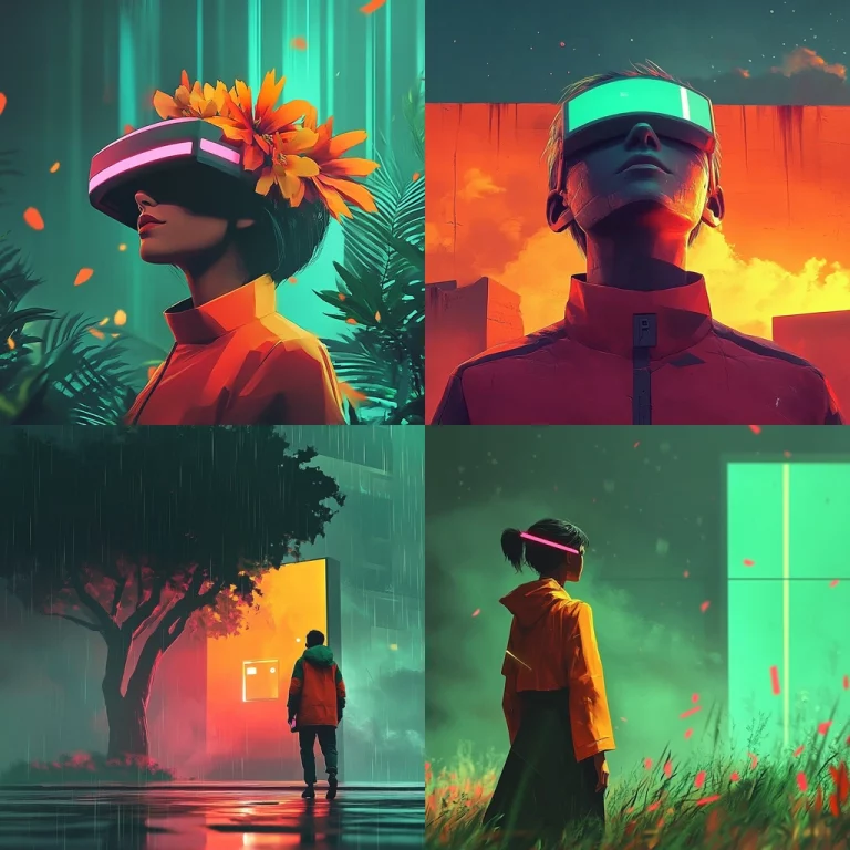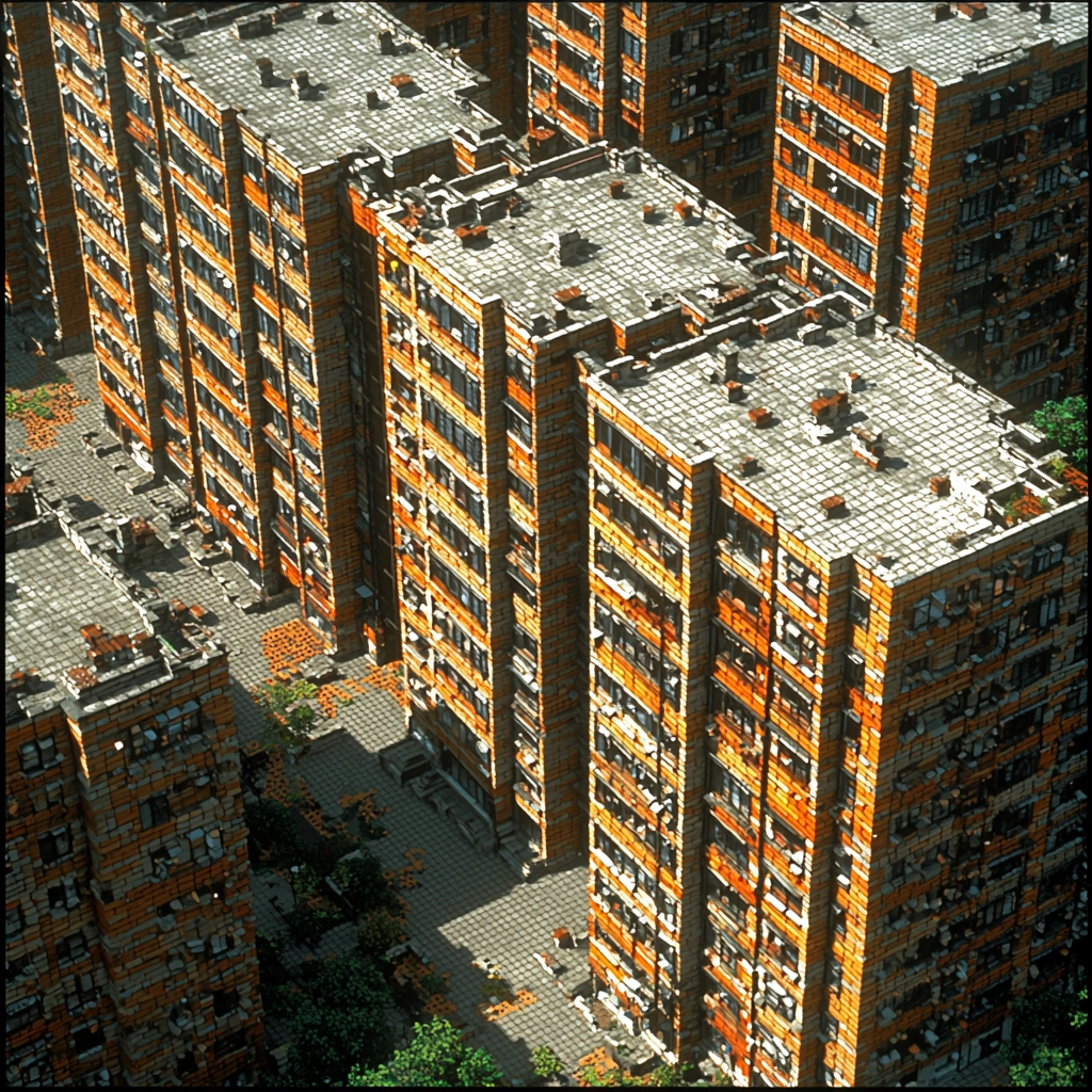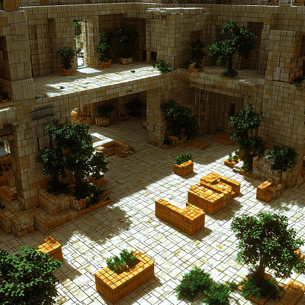 Dynamic lighting contrasts with flat color applications, enhancing spatial depth through geometric arrangements and distinct textural variations within built environments.