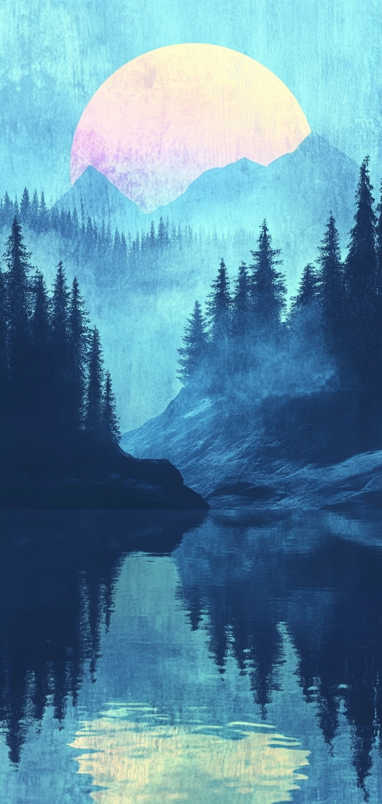 The work features cool-toned scenes with bold, contrasting colors in natural surroundings.