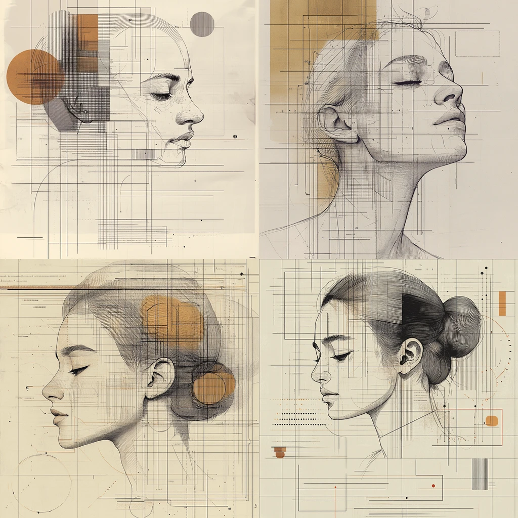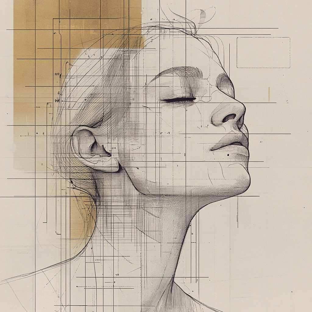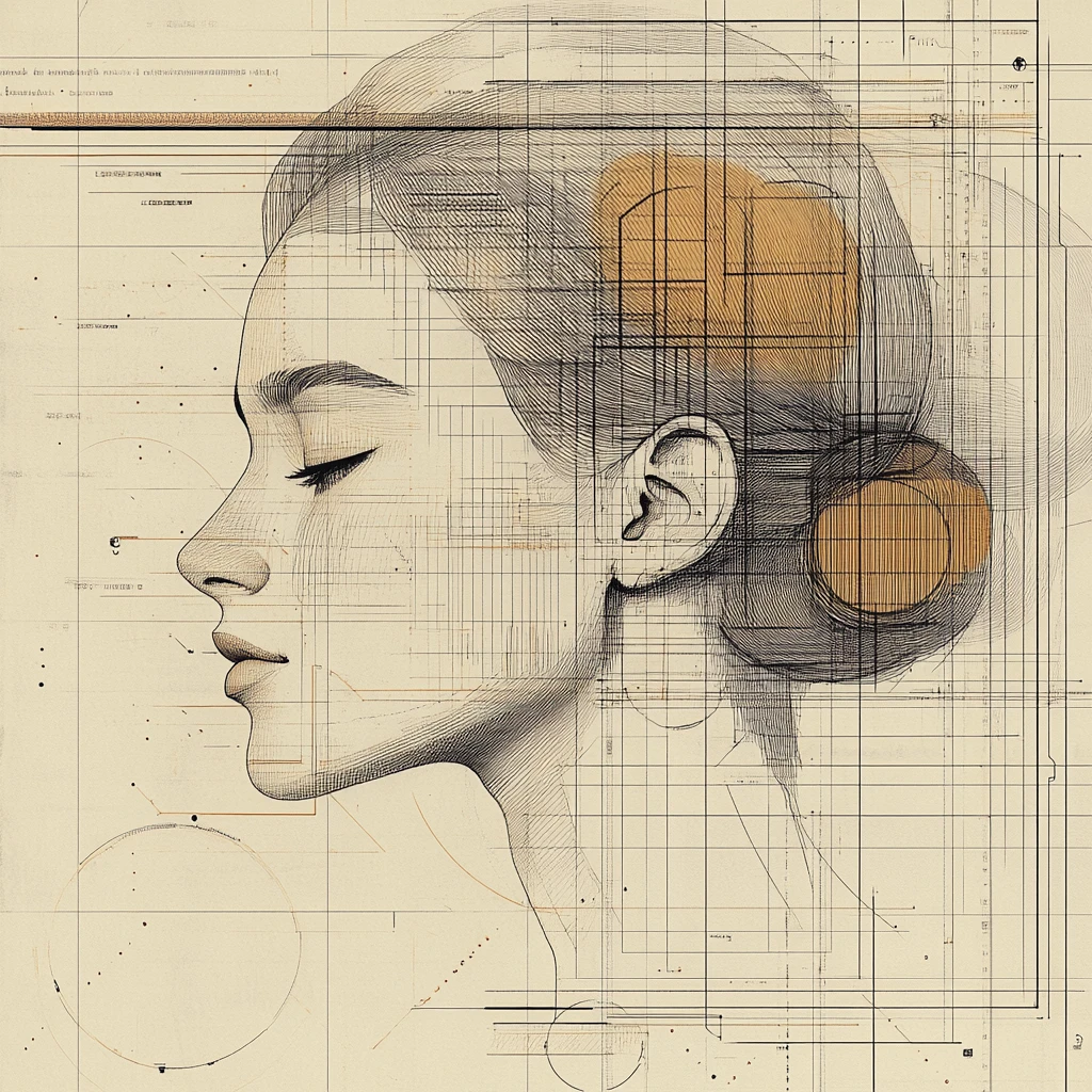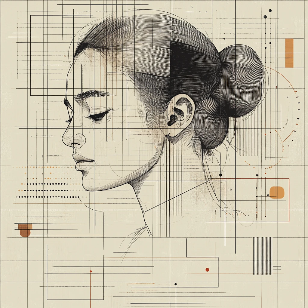 Delicate linework merges with geometric patterns, creating a harmonious blend of organic curves and precise technical schematics.