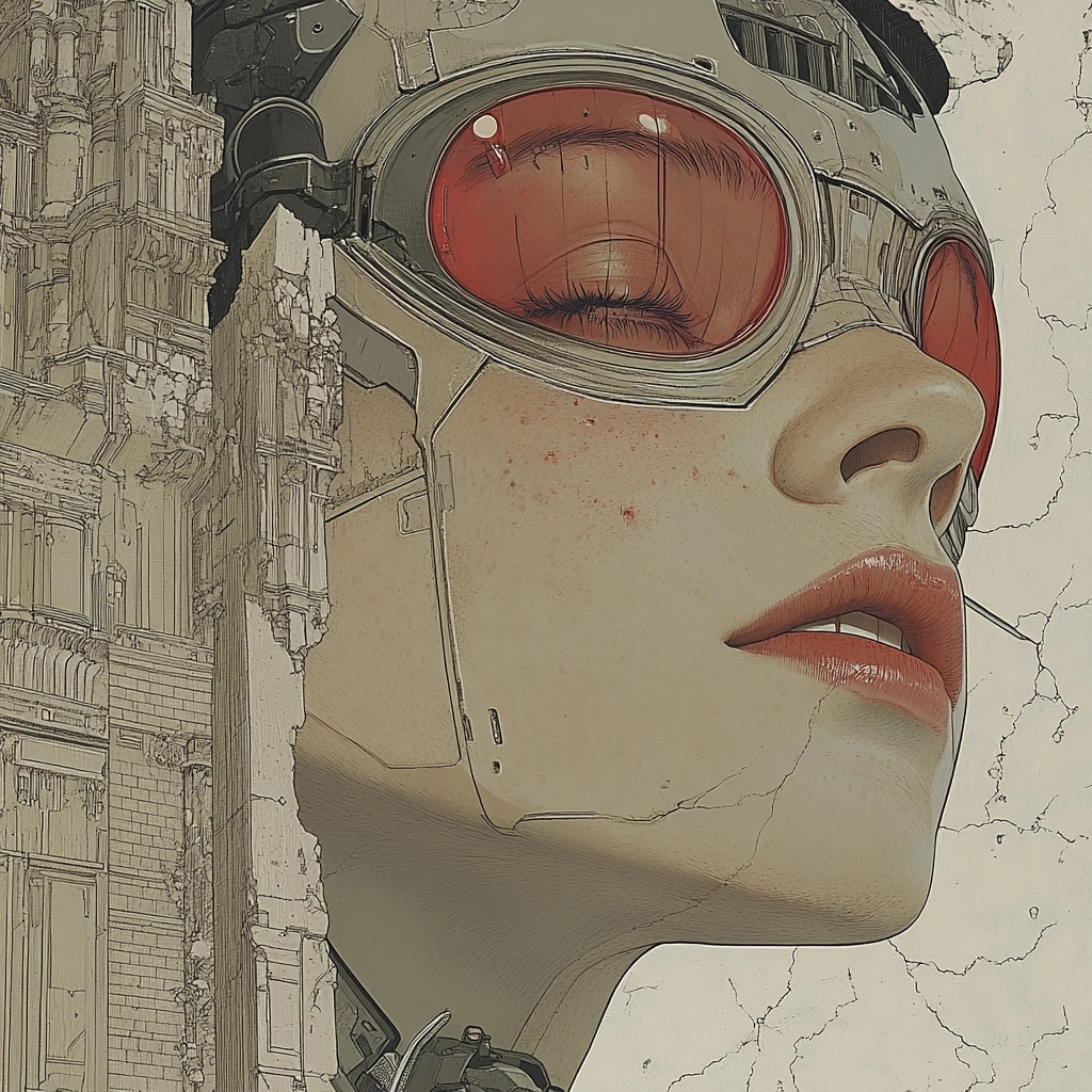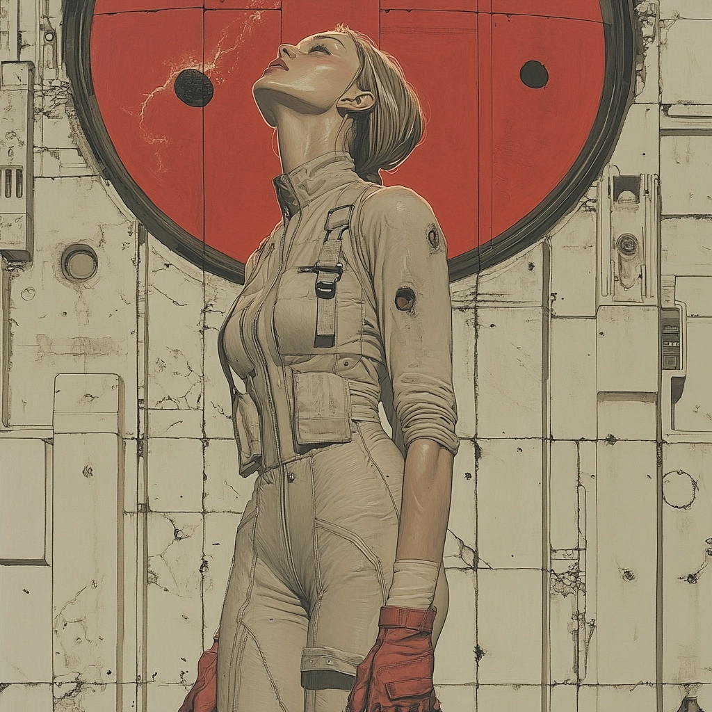 The lighting is stark and purposeful, accentuating the contrast between the neutral backgrounds and bold colors. The textures are detailed and tactile, giving depth to the surfaces, while spatial sense is defined by precise, geometric compositions.