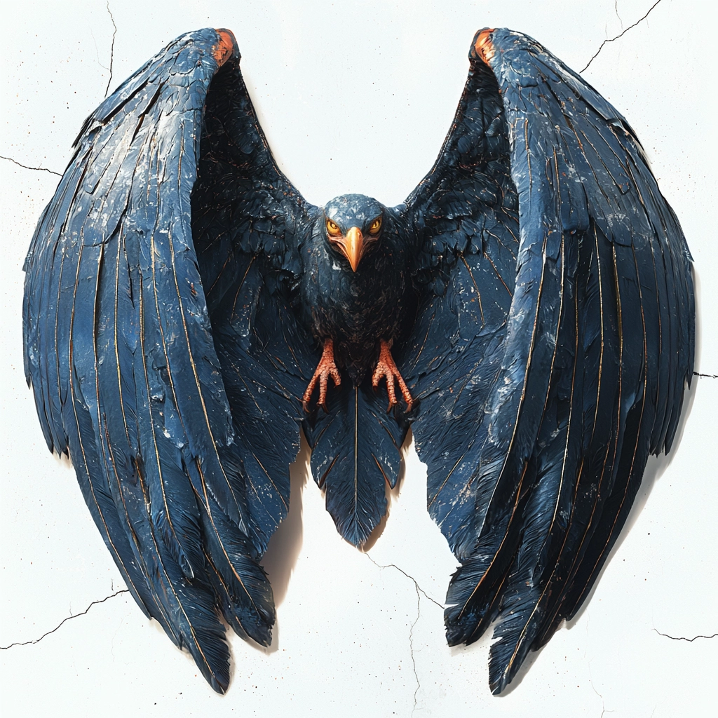 The use of shadow emphasizes texture, lending depth to the blue hues, which interplay with prominent black backgrounds to enhance visual contrast. The intermediate placement and minute detailing create a strong sense of tactile surface throughout the piece.