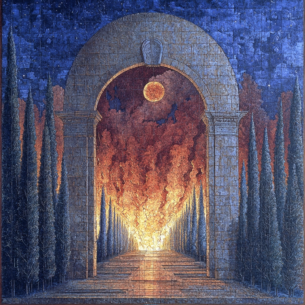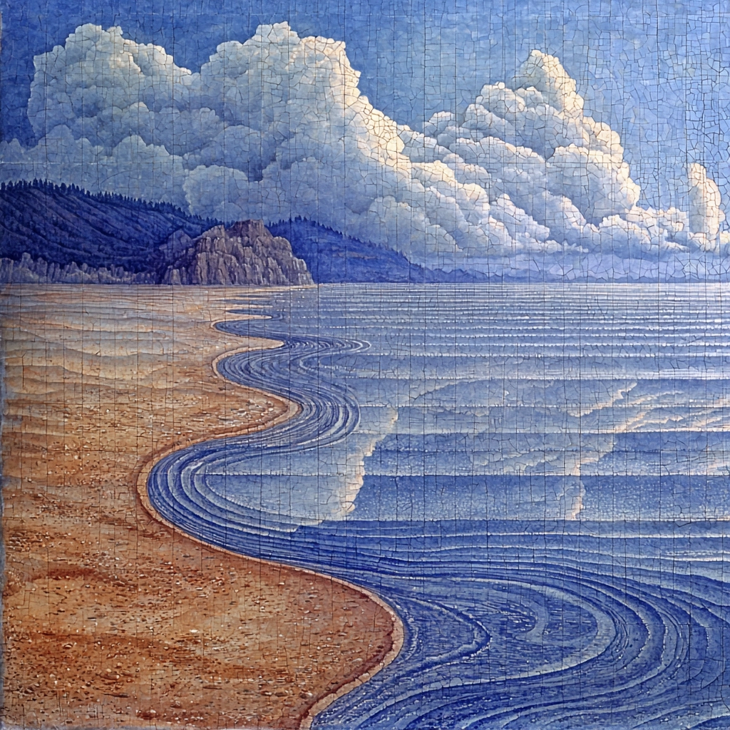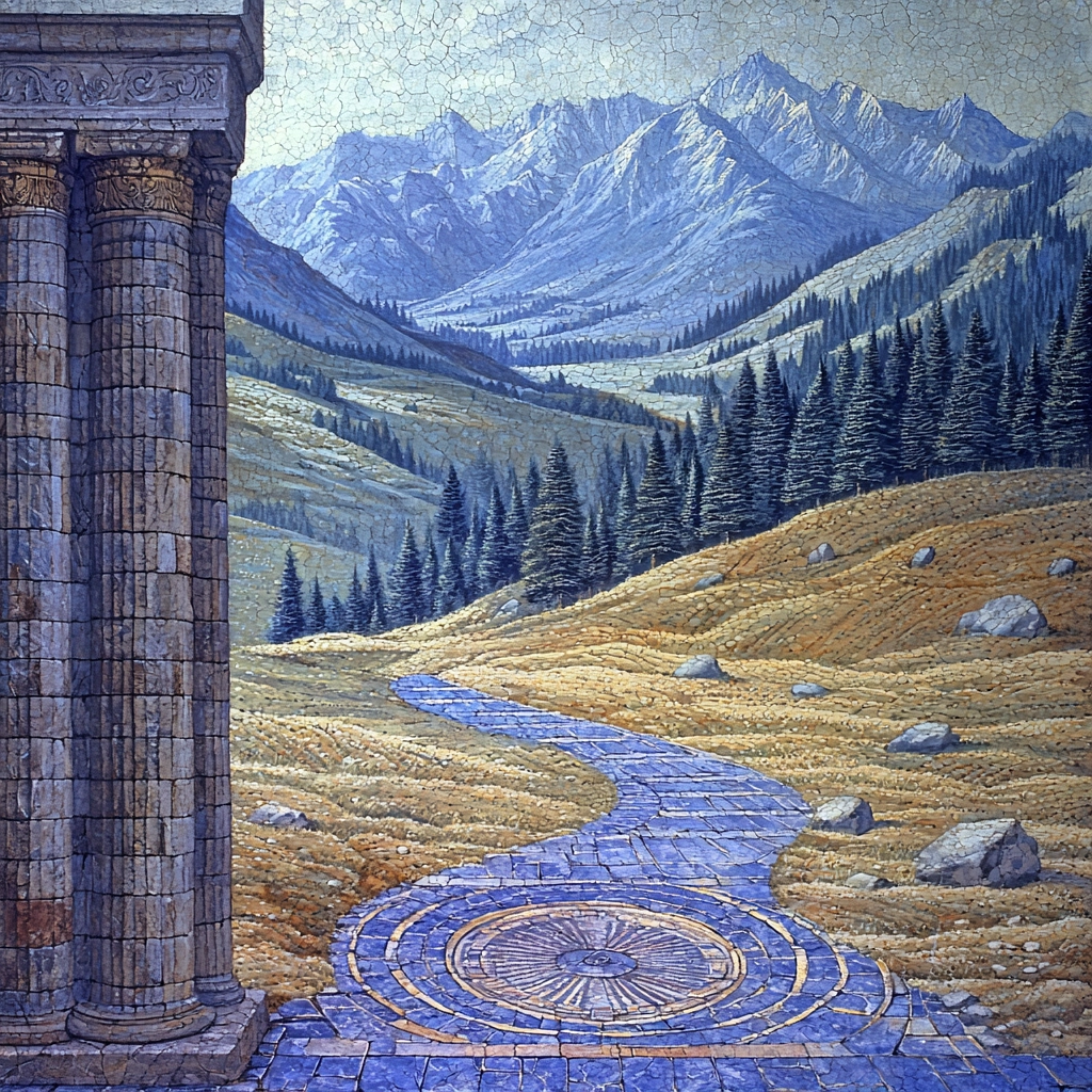The use of lighting enhances the three-dimensional effect of the architectural and natural elements, creating depth. Colors are soft and muted, yet detailed, reinforcing texture across varied landscapes depicted with meticulous care.