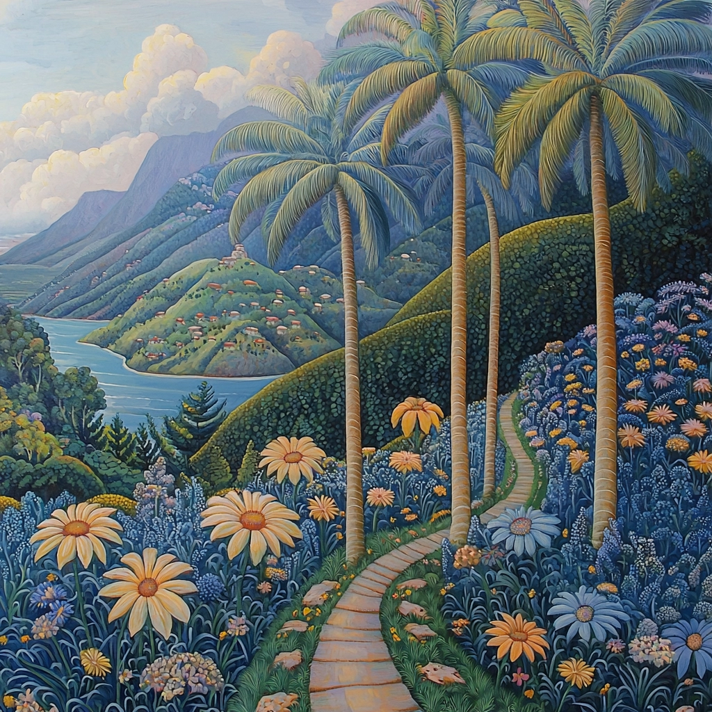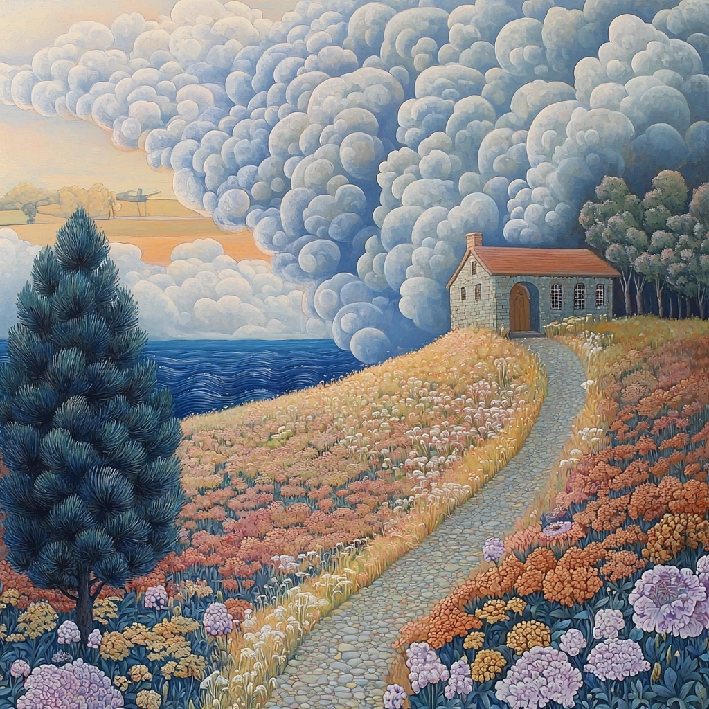 Dynamic lighting casts soft shadows across vibrant hues, enriching the textured surfaces. The layered depths create an immersive dimension while varied color palettes bring prominence to intricate details.