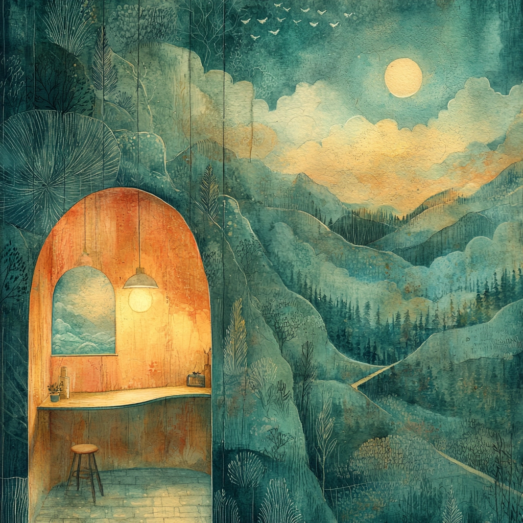 Soft layering and delicate brushwork emphasize variations in light and depth. The cool tones are accentuated with carefully applied warm highlights, while textures add richness to the surfaces. The spatial arrangement fosters a harmonious transition between elements.