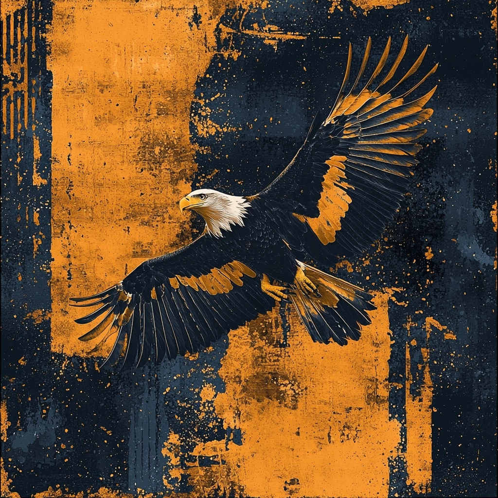 Gold contrasts sharply with dark blue, enhancing dynamic tension.