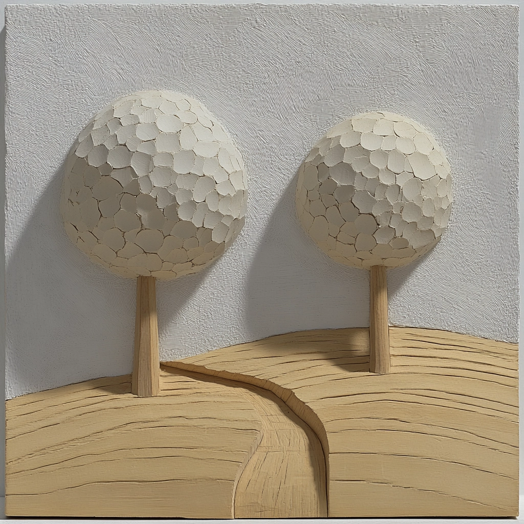 Balanced composition featuring neutral tones and textured surfaces.
