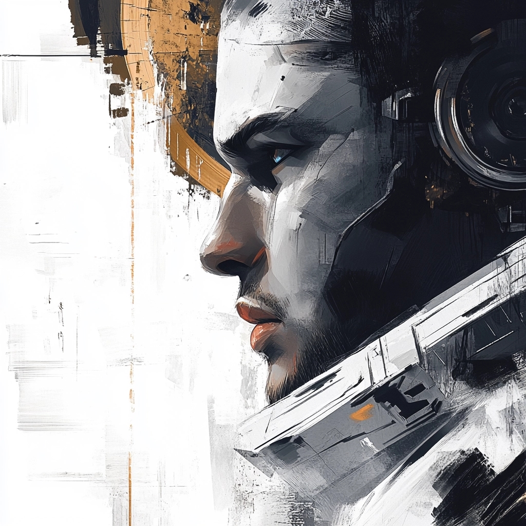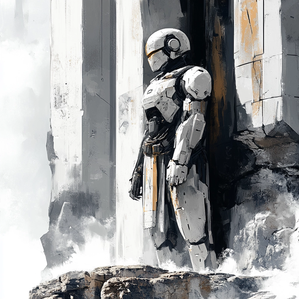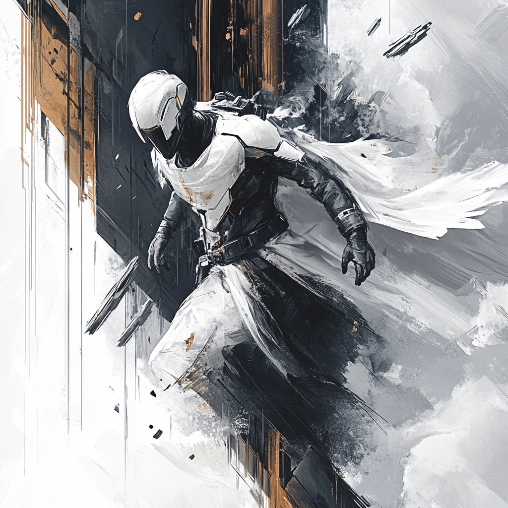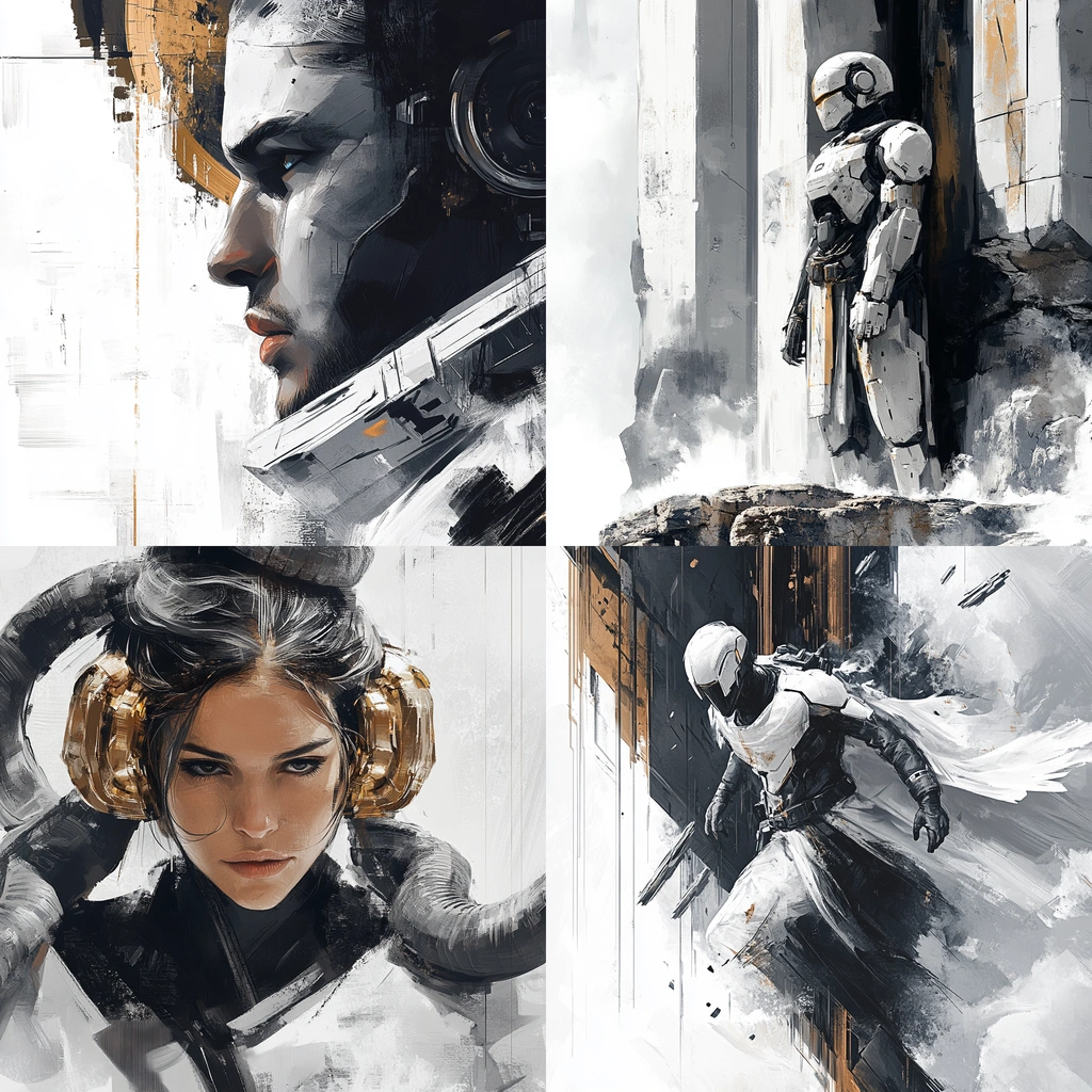 A high contrast interplay of monochrome tones complemented by rusty browns.