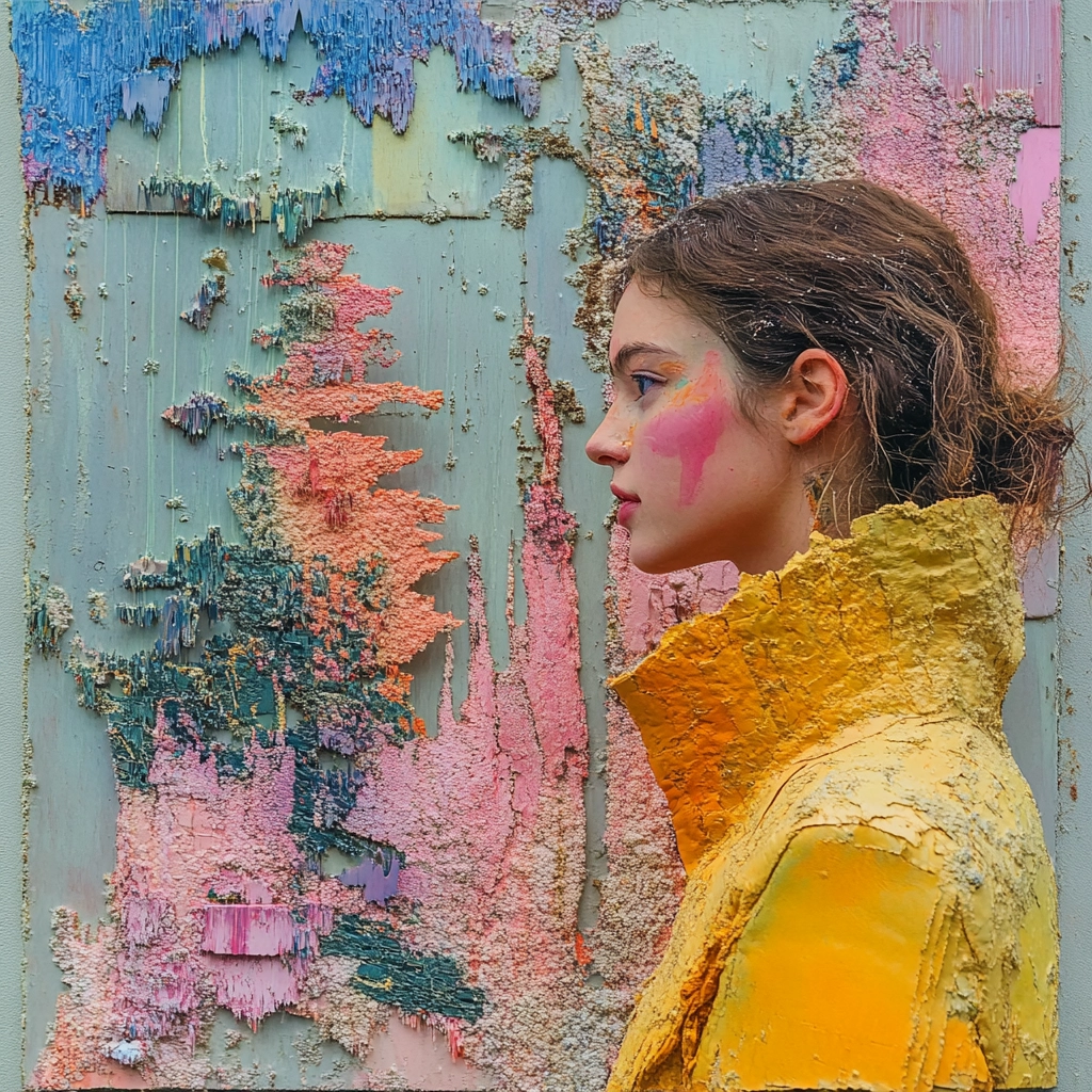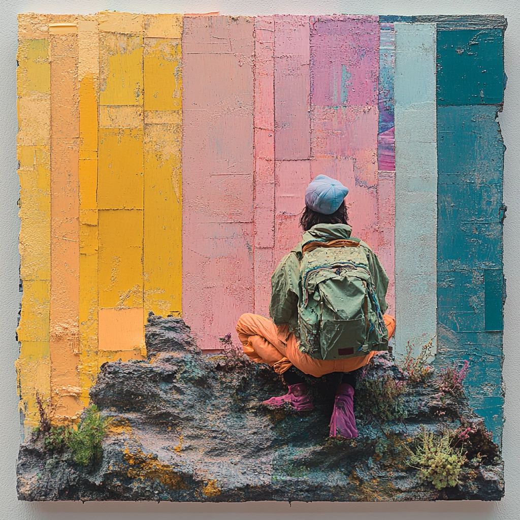 Multi-dimensional surfaces with vibrant pastel hues create depth.