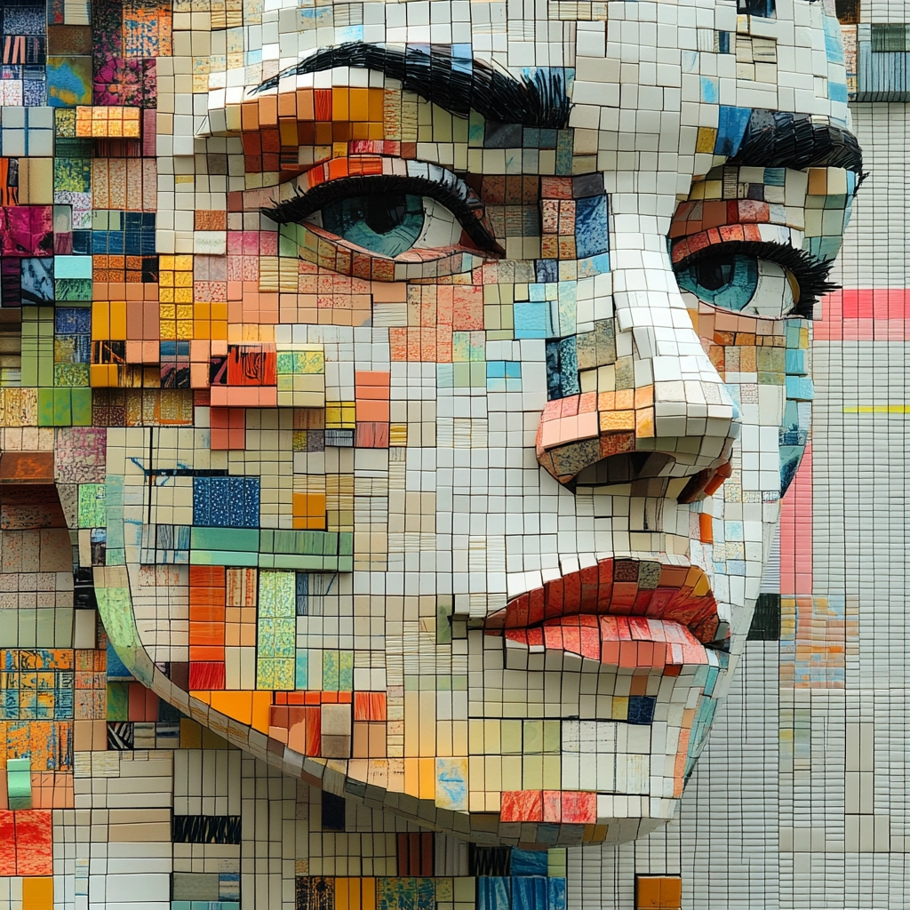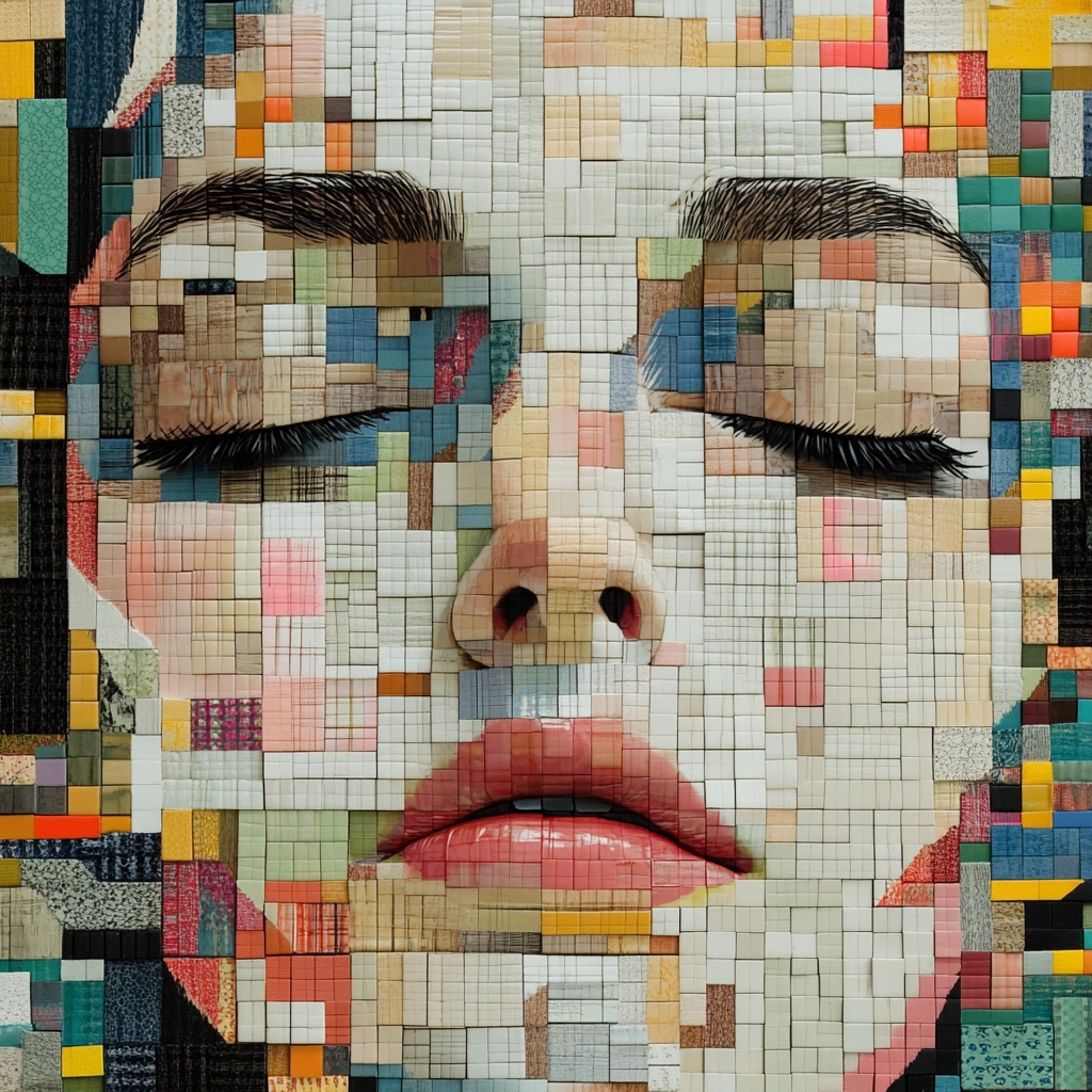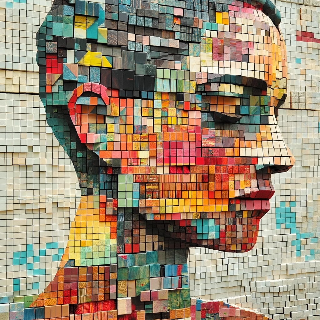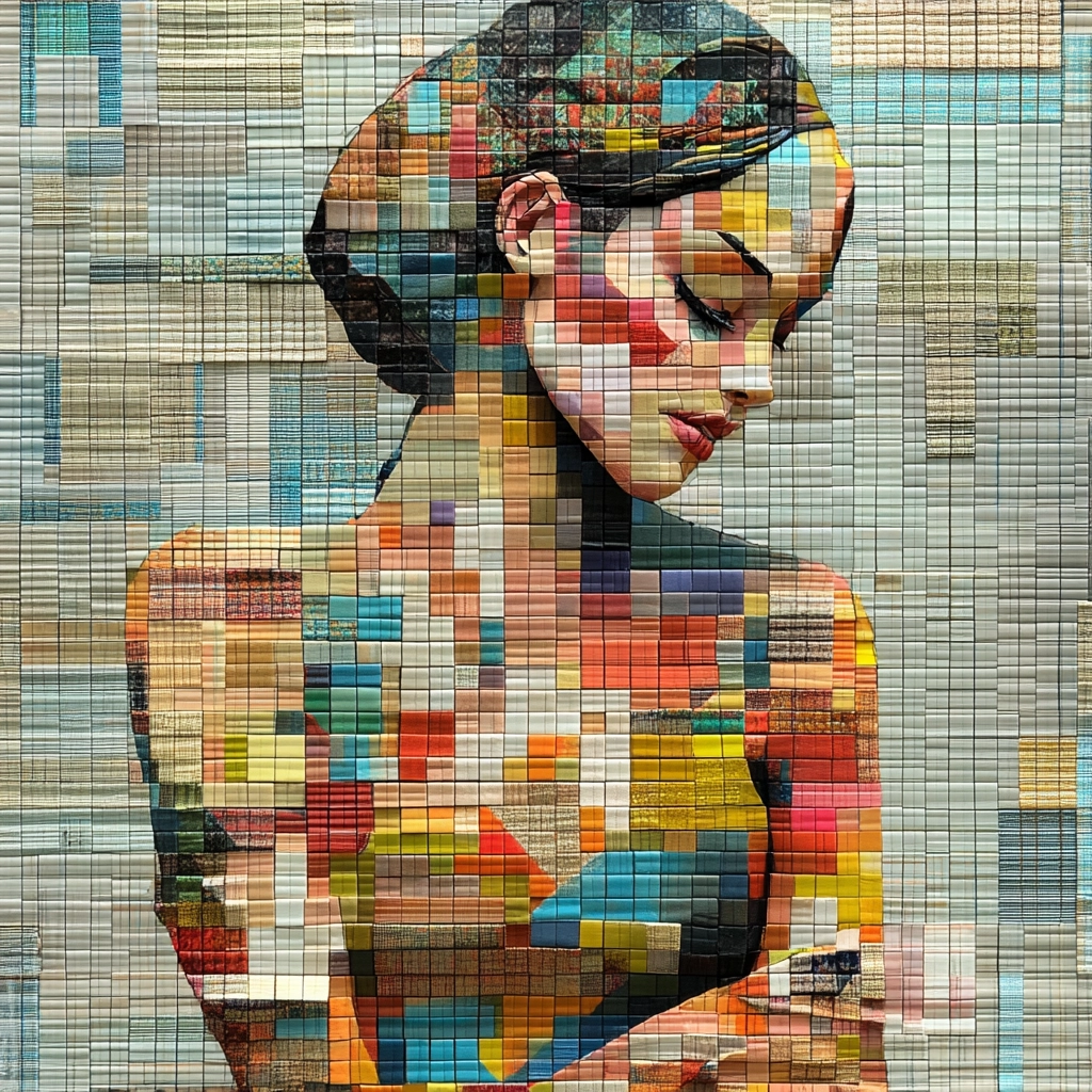 An array of vibrant pixels forms abstract compositions with intricate textural depth.