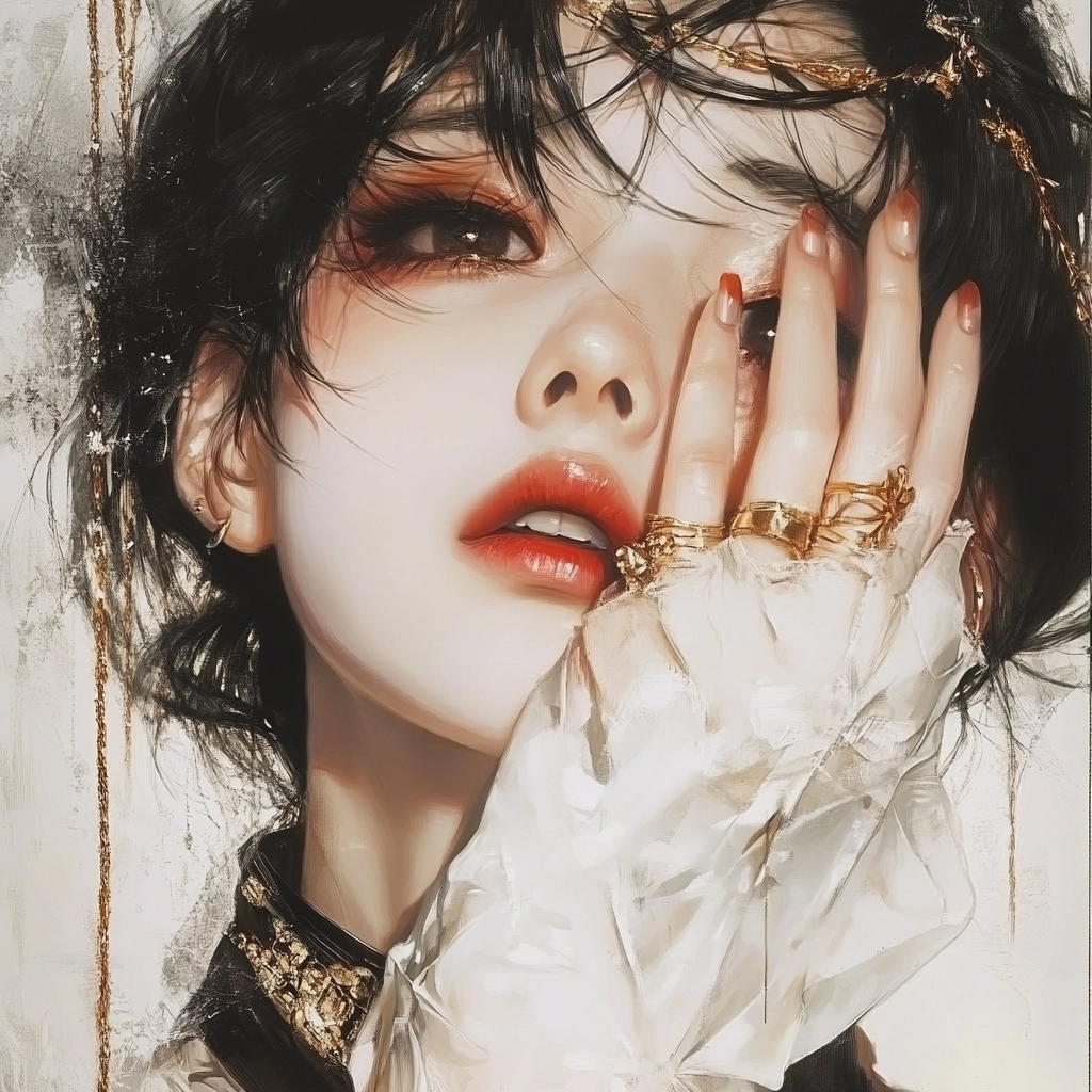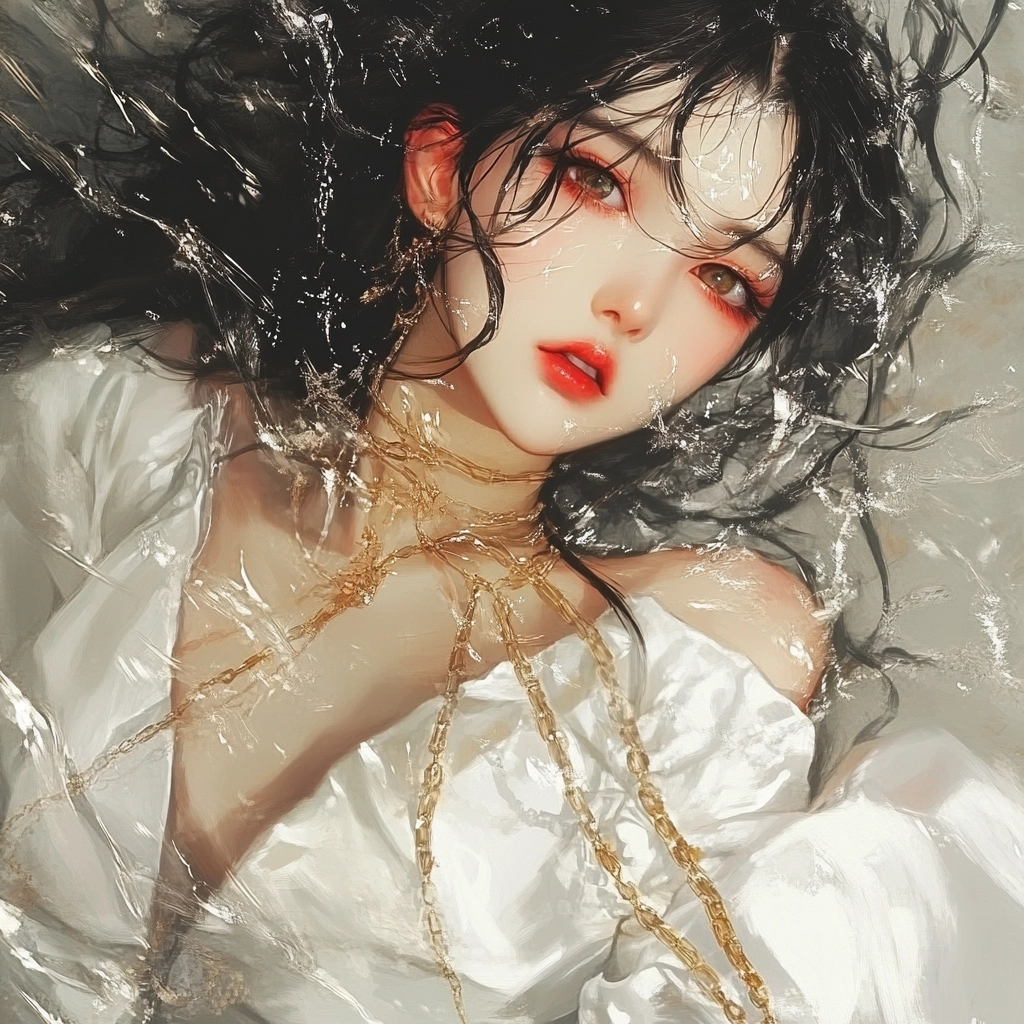 The interplay between the glossy white textures and the gold accents is enhanced by precise lighting that defines the contours and brings out the sheen of the material. The composition makes use of contrast to establish depth and sharpens details with a realistic approach.