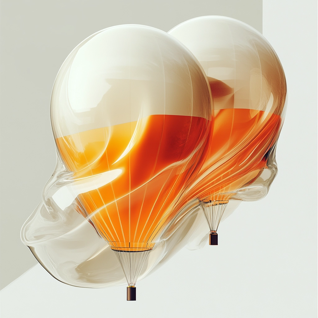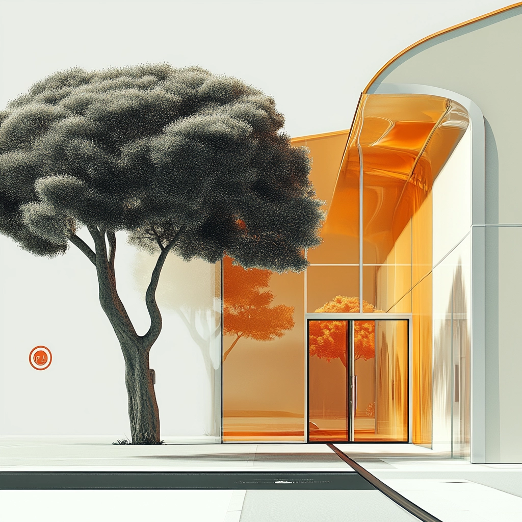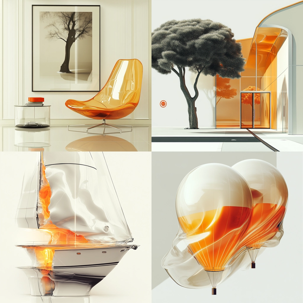 A composition centered on modern design with clear structures and vibrant hues, exhibiting transparent and reflective surfaces.