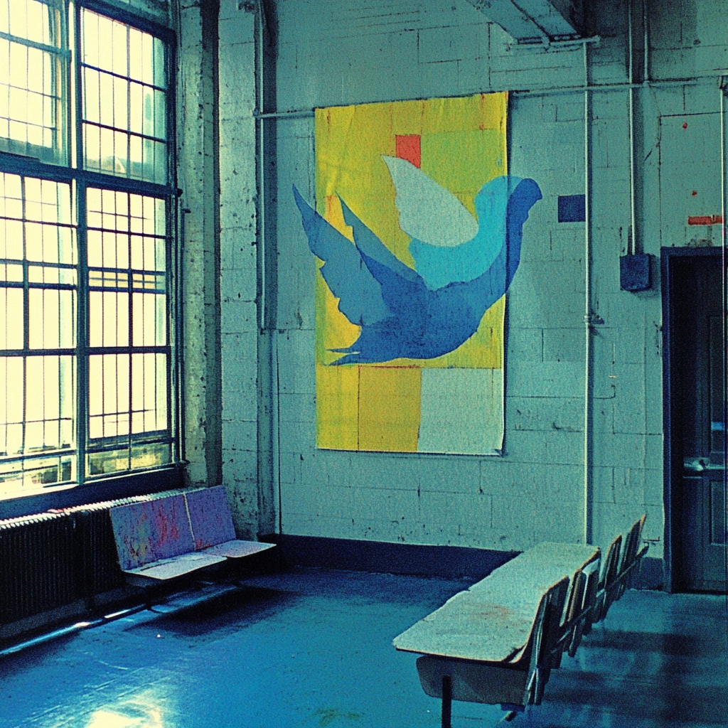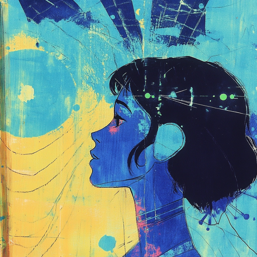 A mix of blue and yellow tones with dynamic compositions and strong contrasts.