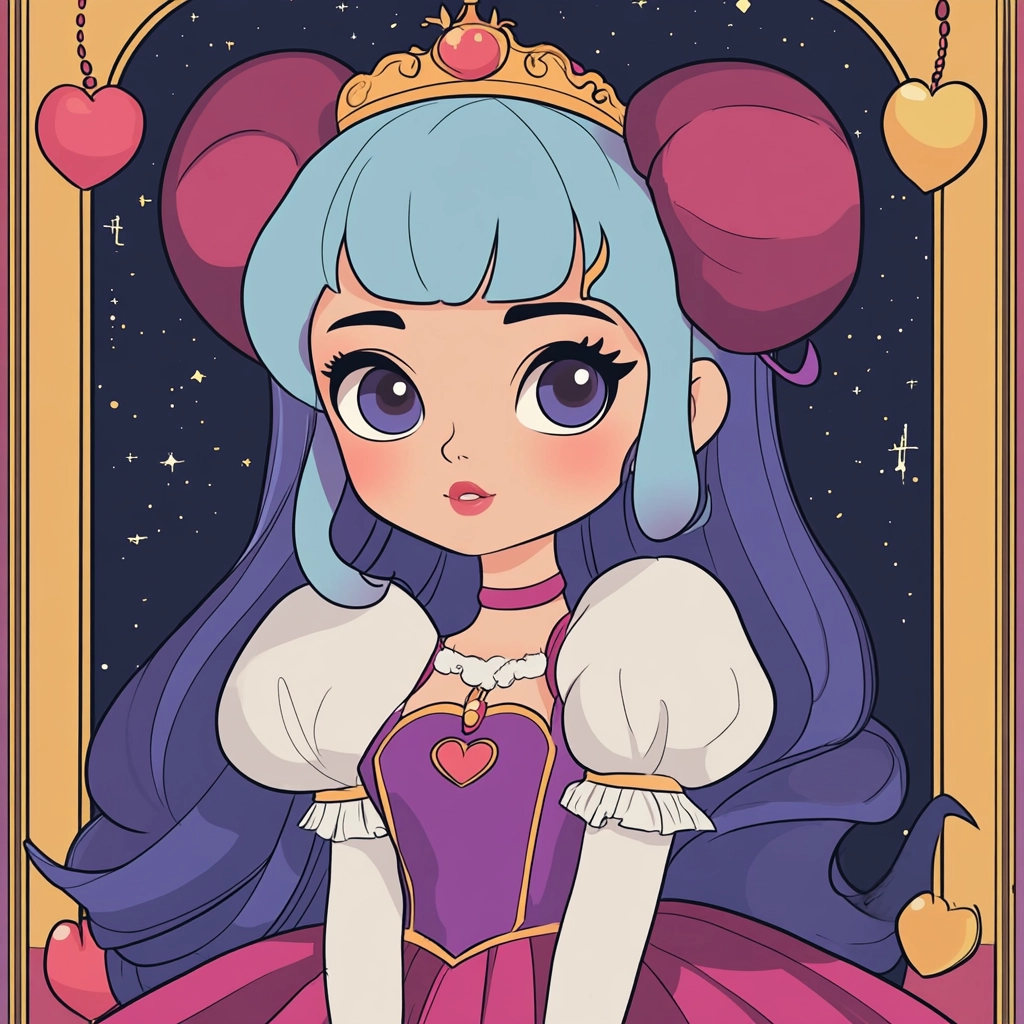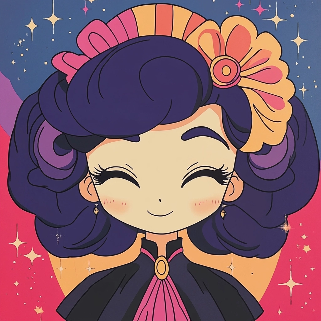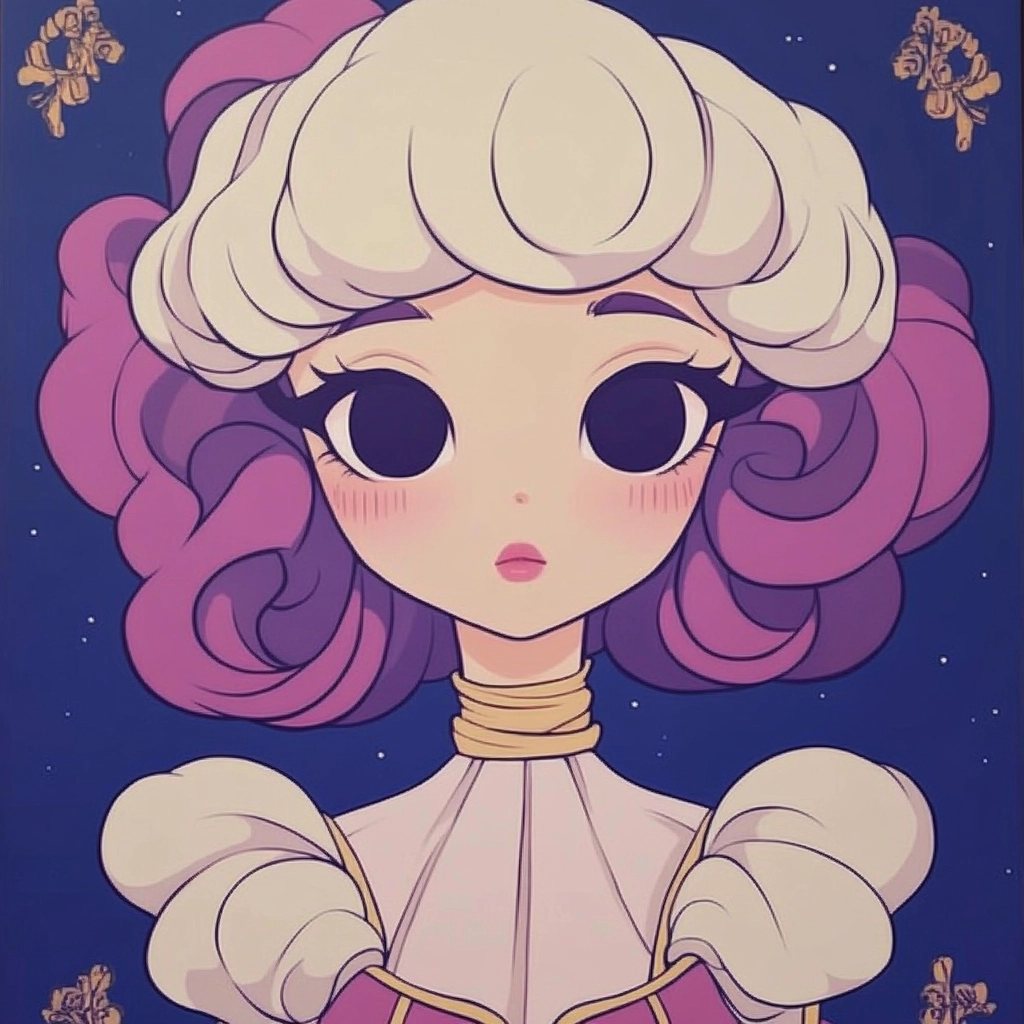 The use of bright colors with bold outlines creates a vivid visual effect. The lighting is uniform, enhancing the flatness typical of cartoon styles, while decorative details contribute to a lively texture.