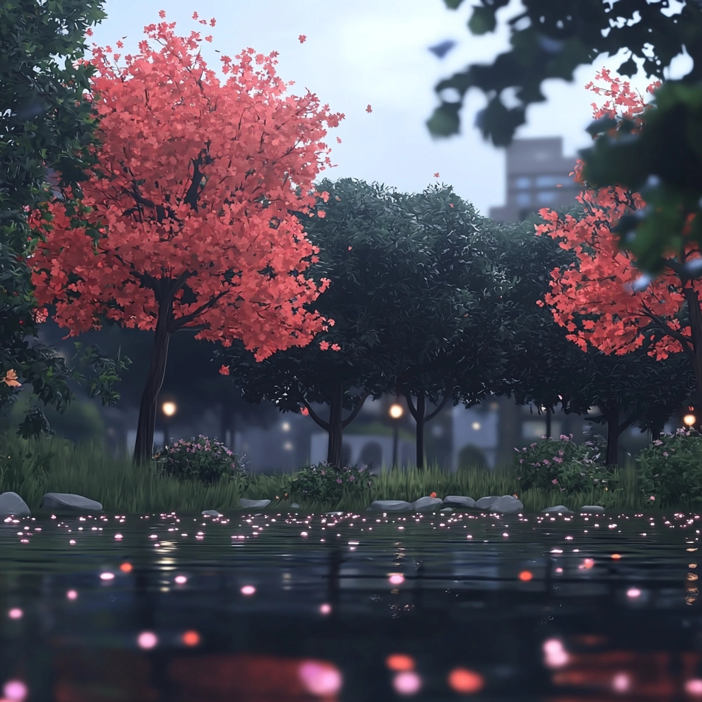 The striking use of dark and vibrant colors creates a dramatic lighting effect, with distinct textures bringing liveliness and depth. There is a clear spatial perspective that adds to the visual impact.
