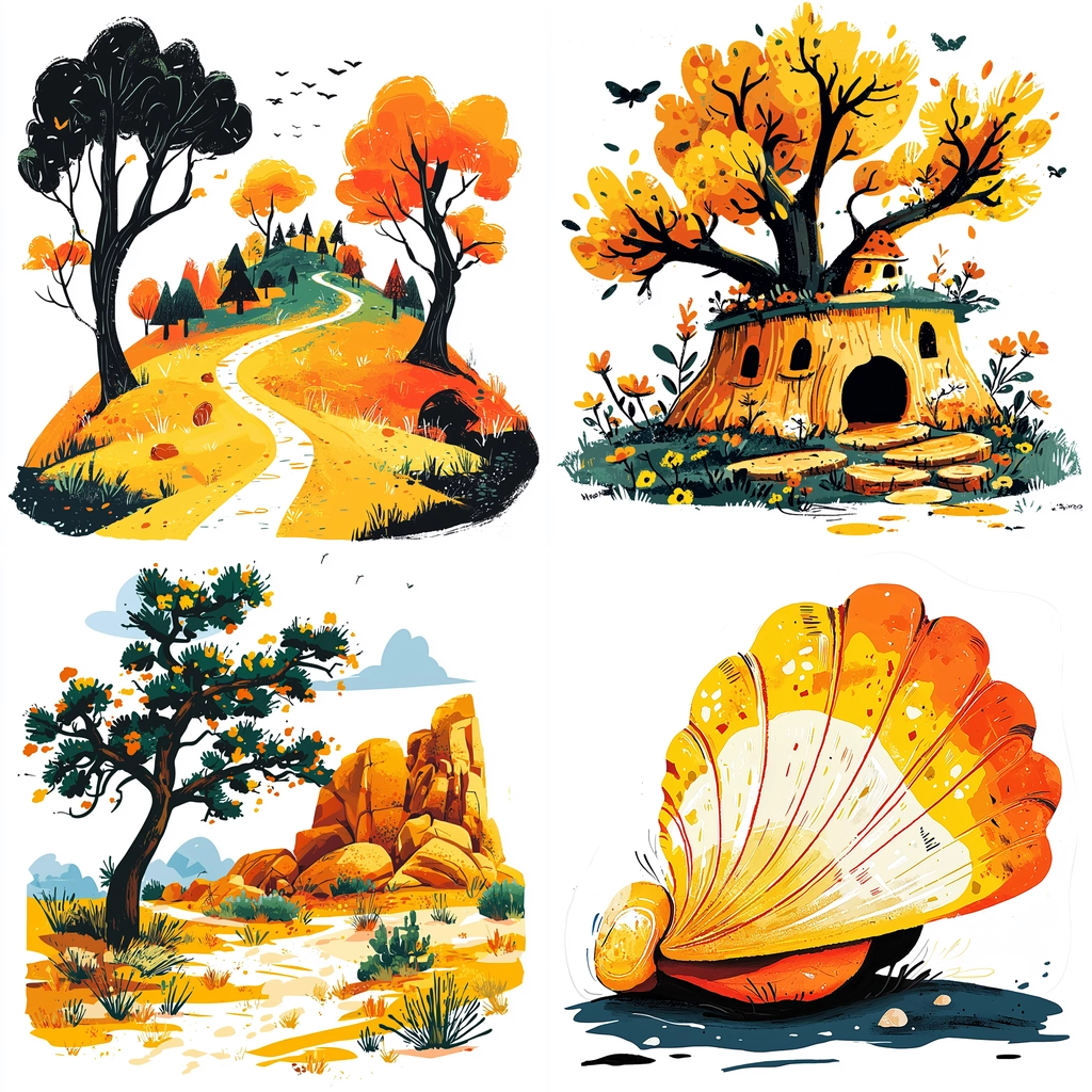 Dynamic compositions with bold outlines and vibrant colors create a lively atmosphere.