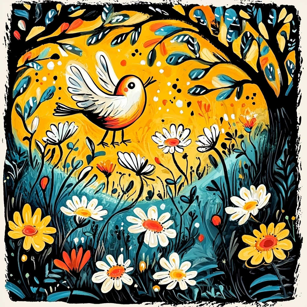 Bright and bold colors with dynamic compositions creating visual rhythms.