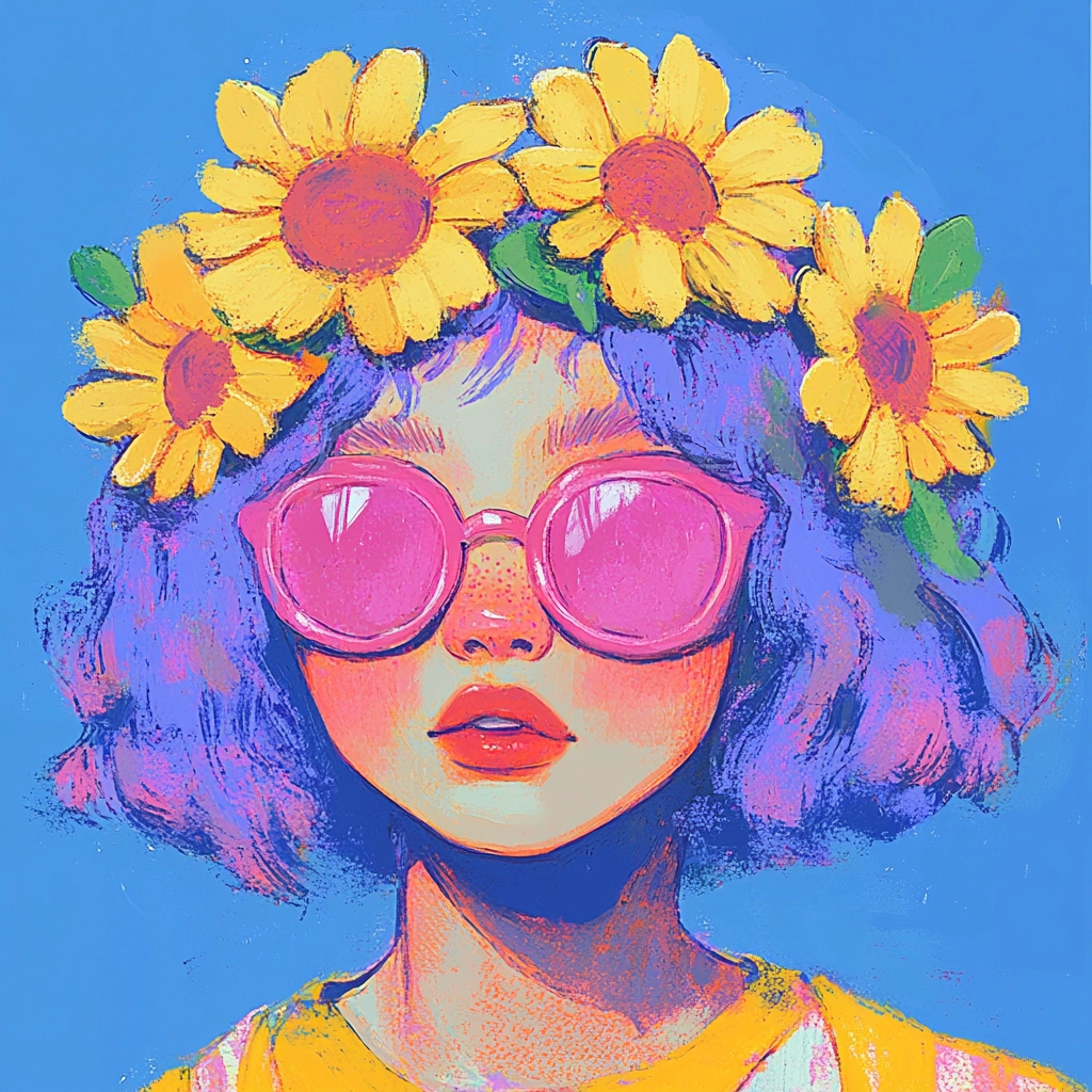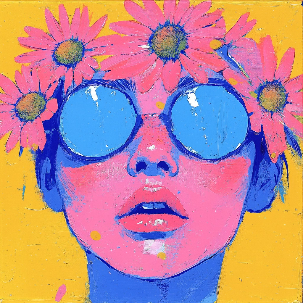 The artwork showcases vibrant colors with a playful contrast and dynamic composition.
