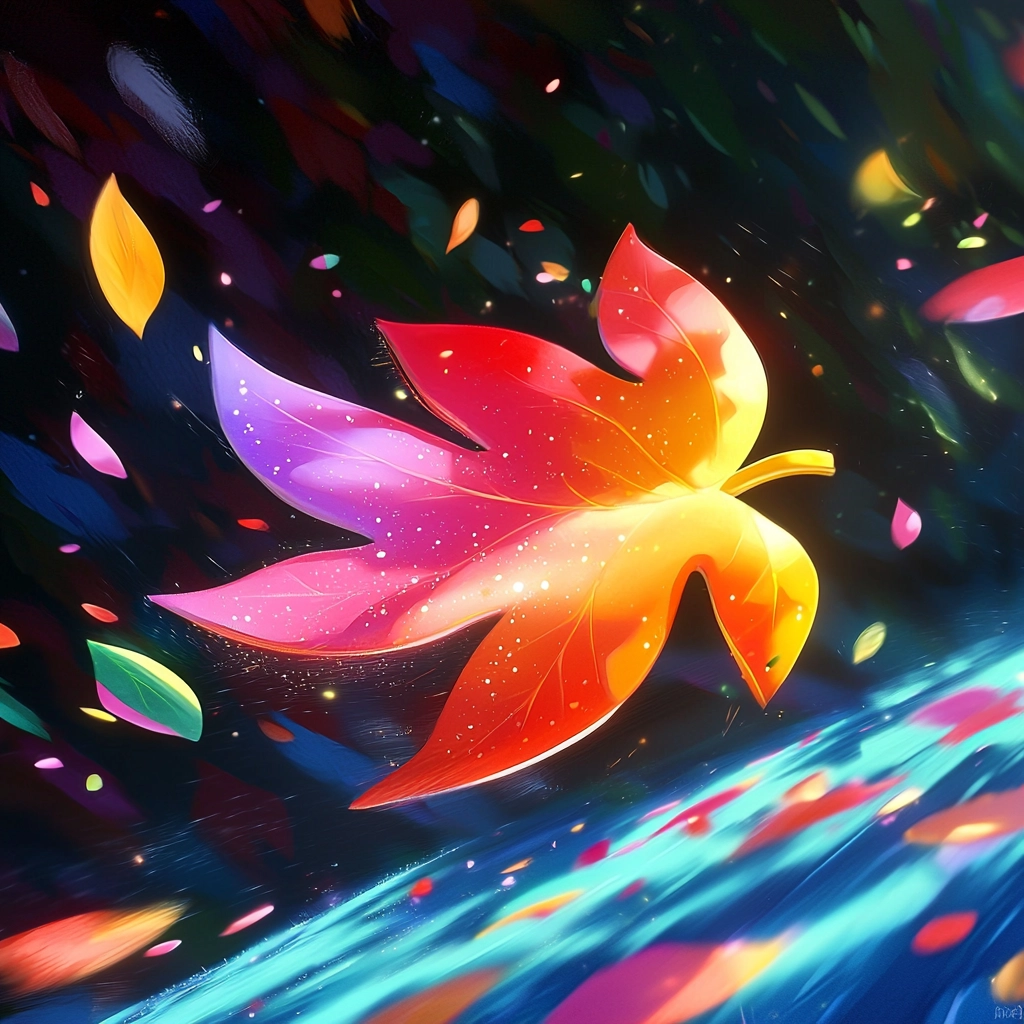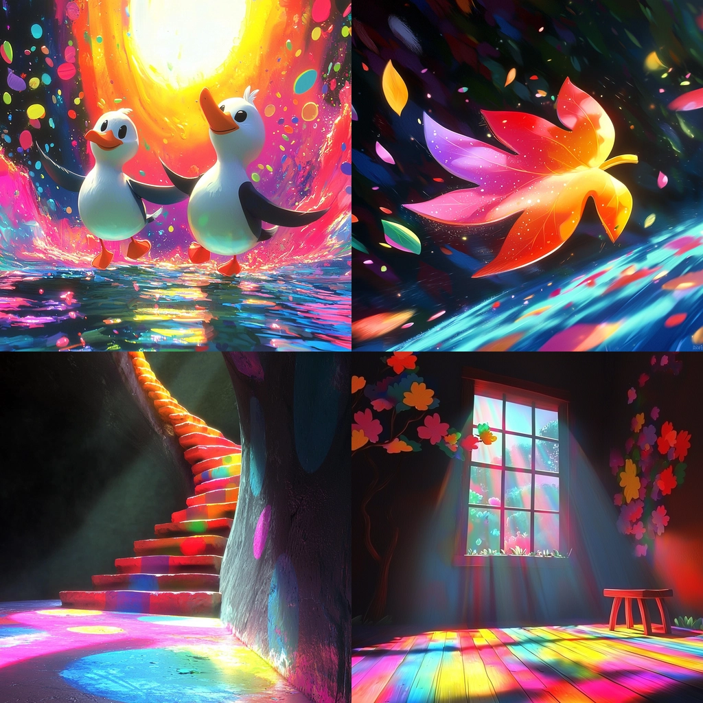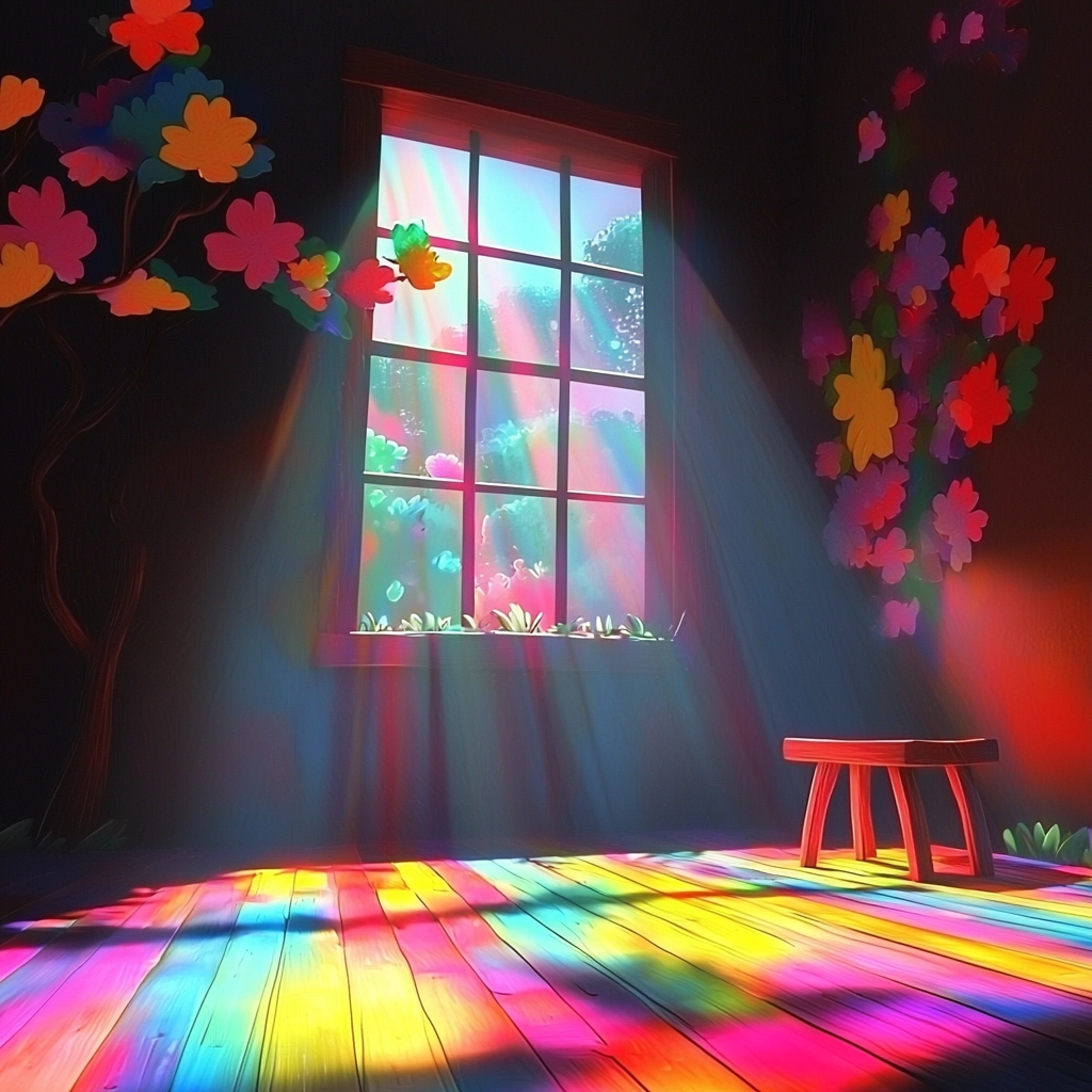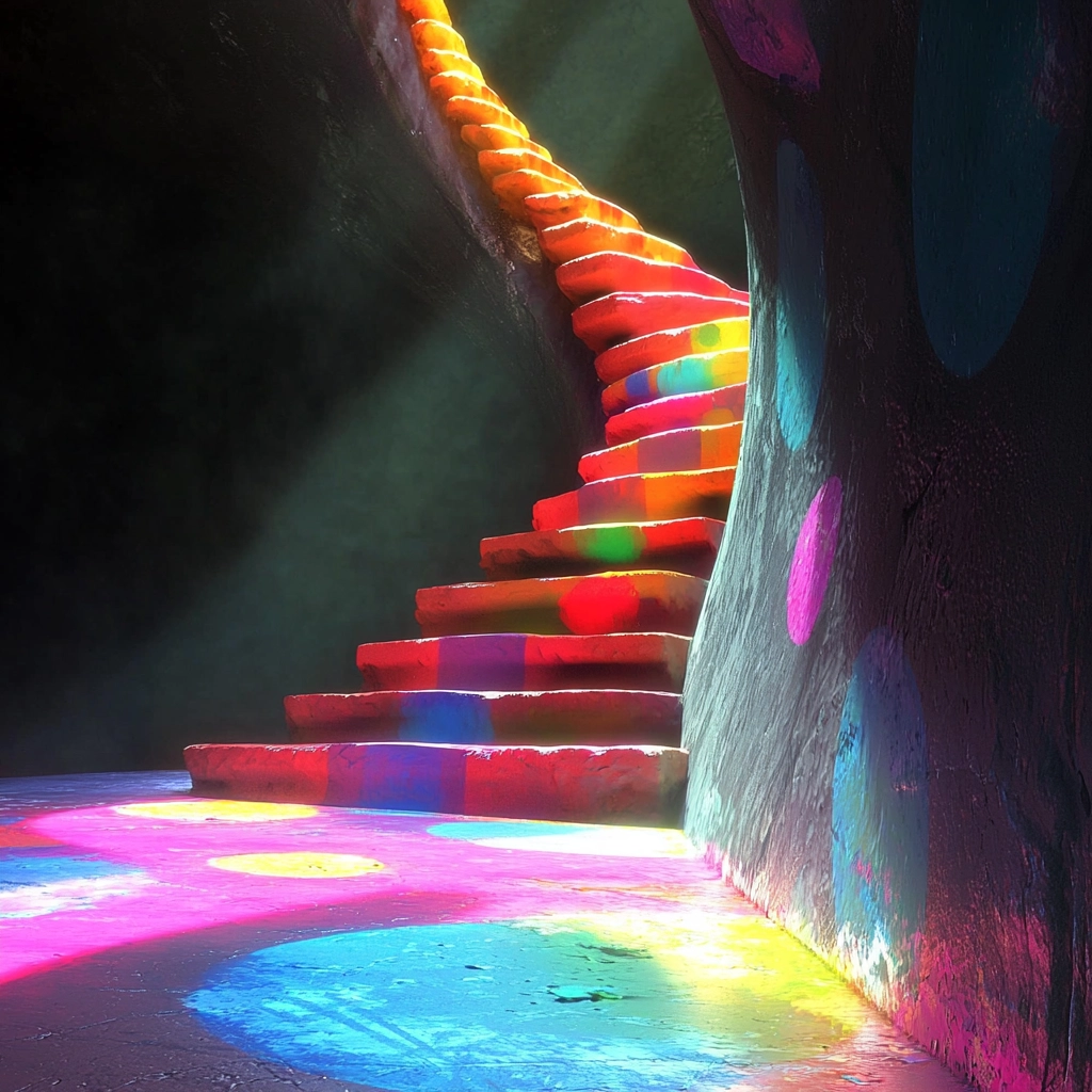 The lighting effects create a vivid glow that enhances the brightness and clarity of colors. The gradient transitions smoothly across the space, revealing a textured and layered pattern. The interplay of light and shadow adds depth, forming a lively spatial experience.