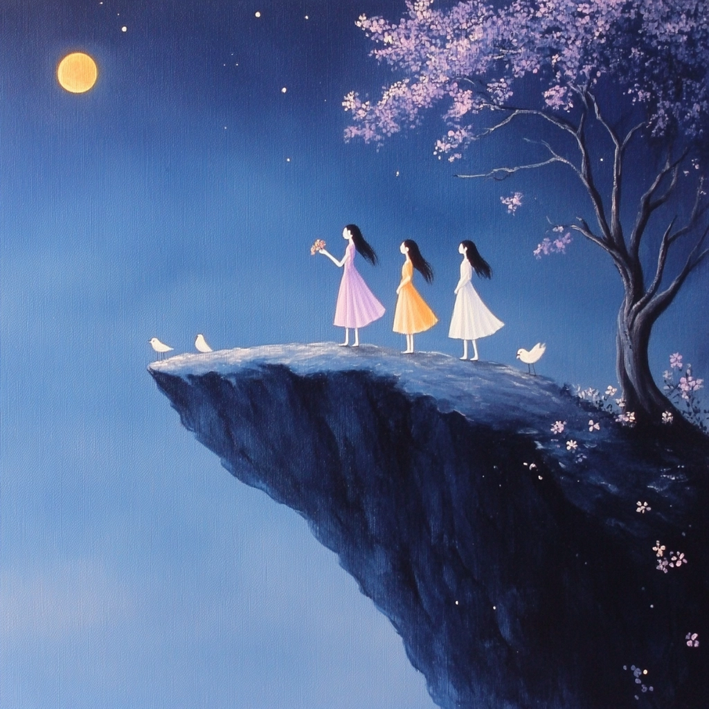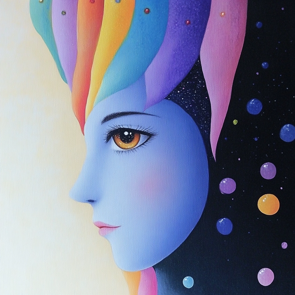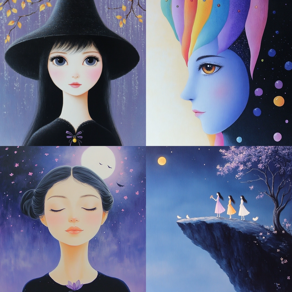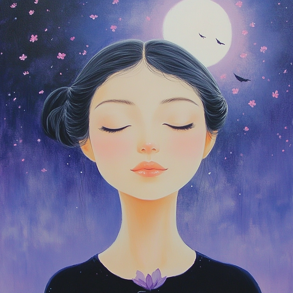 The artwork utilizes balanced lighting effects with a smooth gradient of purples and blues, giving depth and dimension. Texture expression is sleek, with a clear spatial sense achieved through distinct layers and crisp outlines.