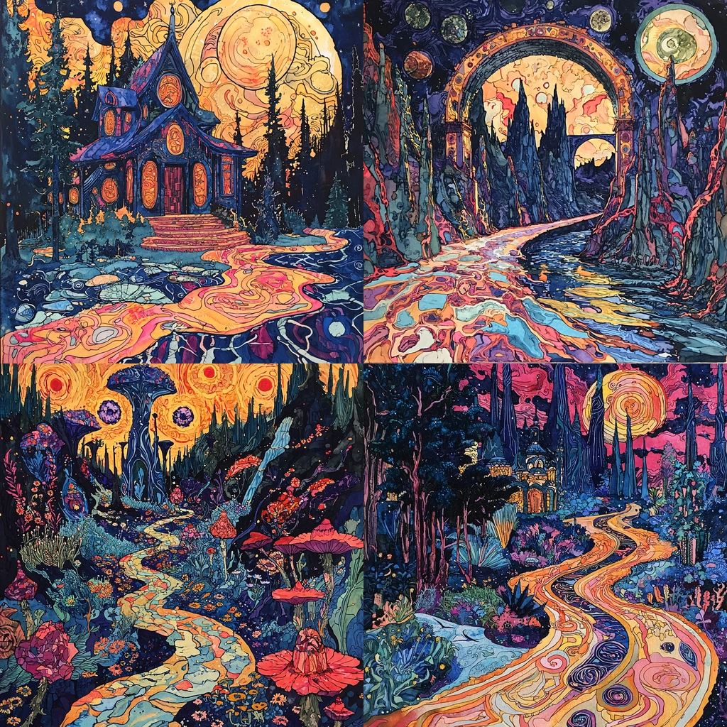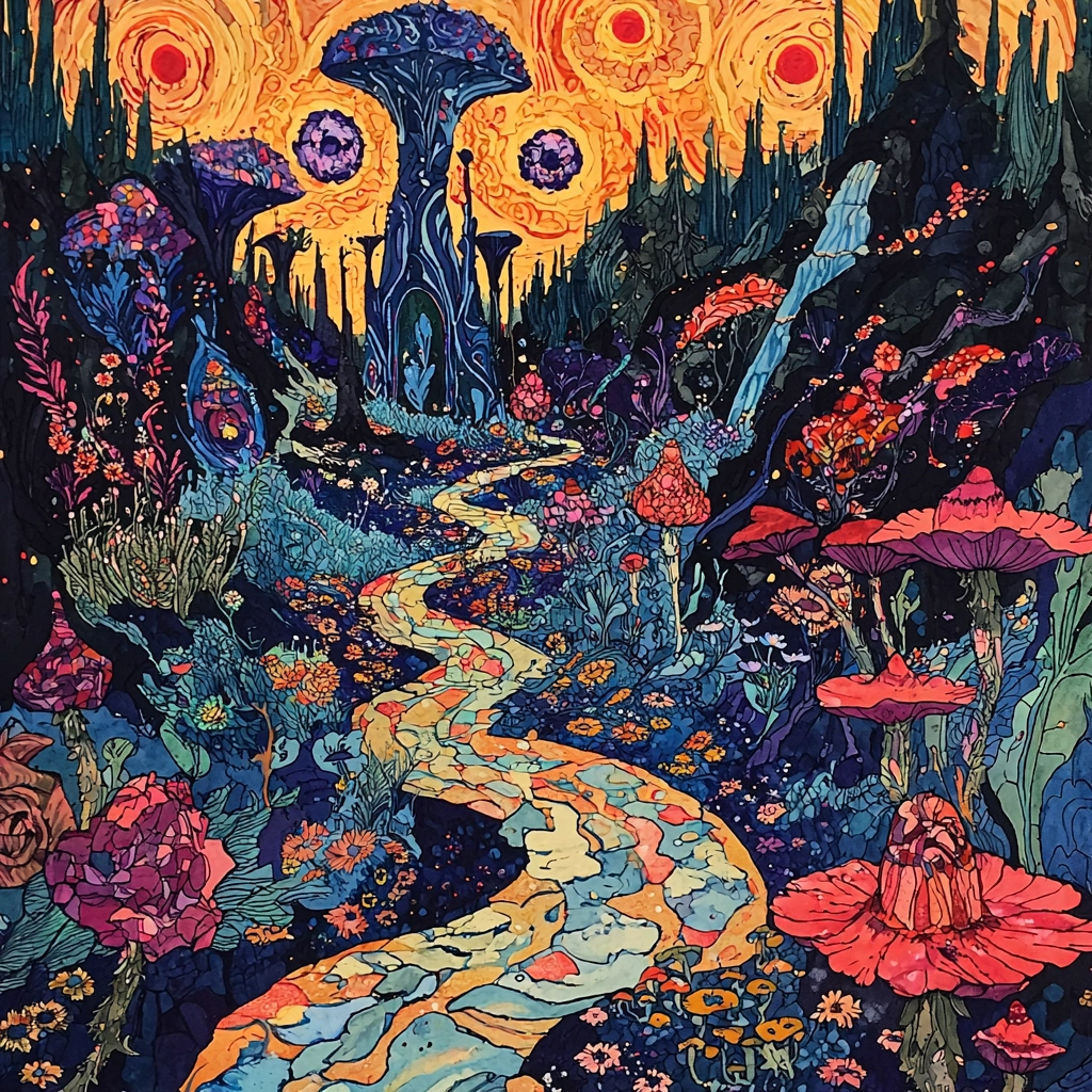 Interplay of vivid colors and dynamic patterns creates an energetic visual experience.