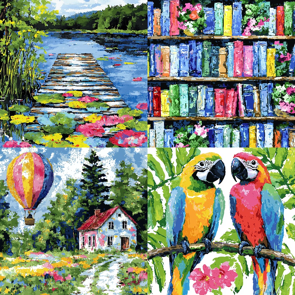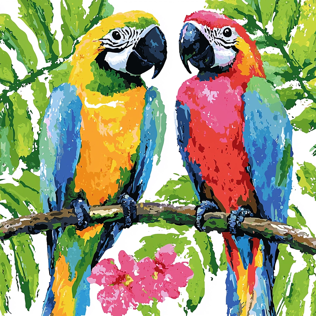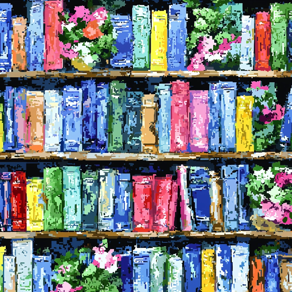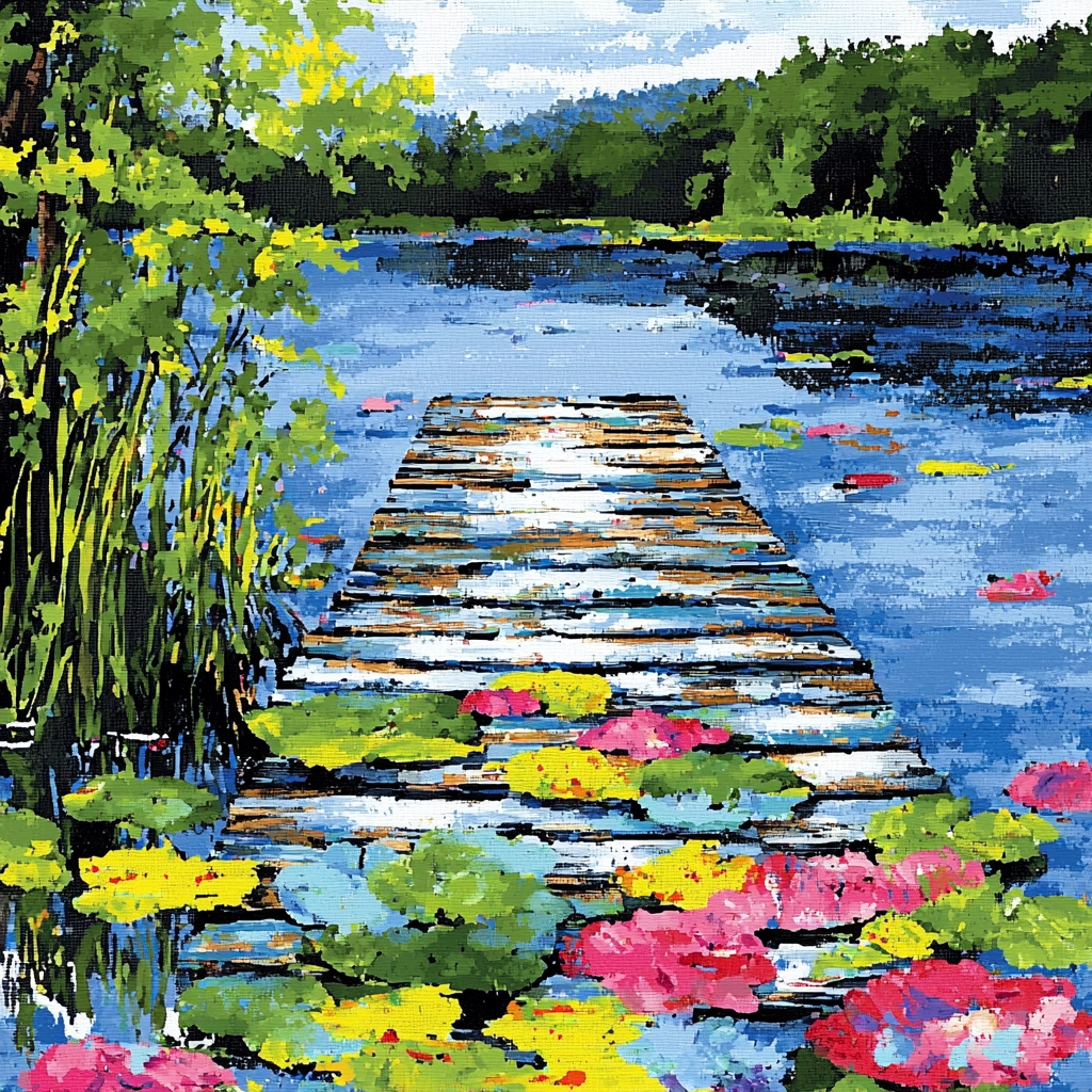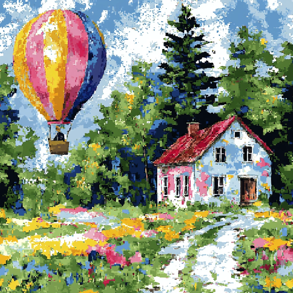 Lighting is clear and crisp, enhancing the bold, saturated colors. A dynamic spatial arrangement is evident, with textures expressed through cross-hatched strokes, giving depth and life to the composition.
