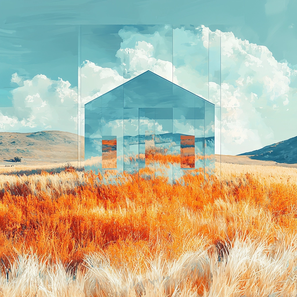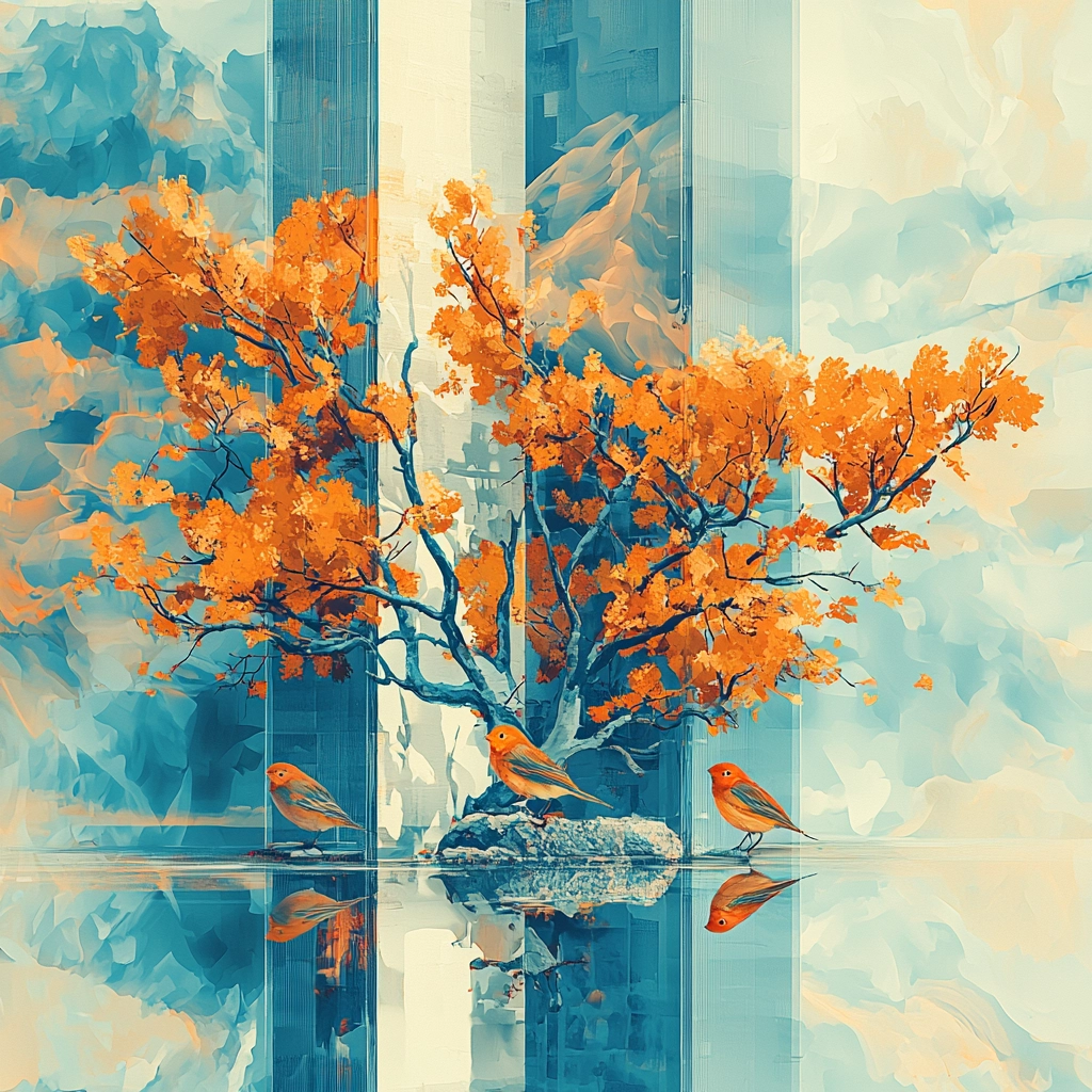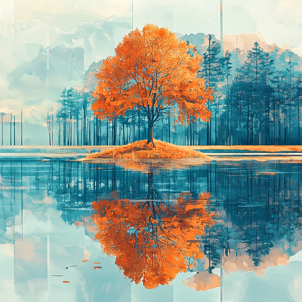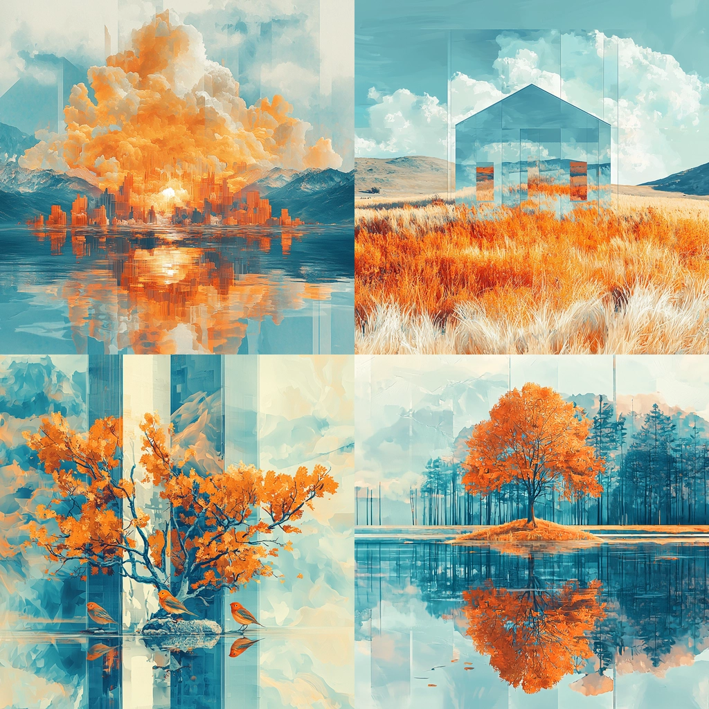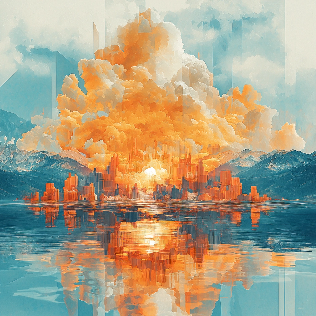 A vibrant interplay of cyan and orange hues creates dynamic reflections.