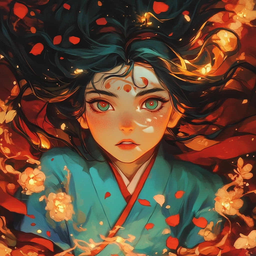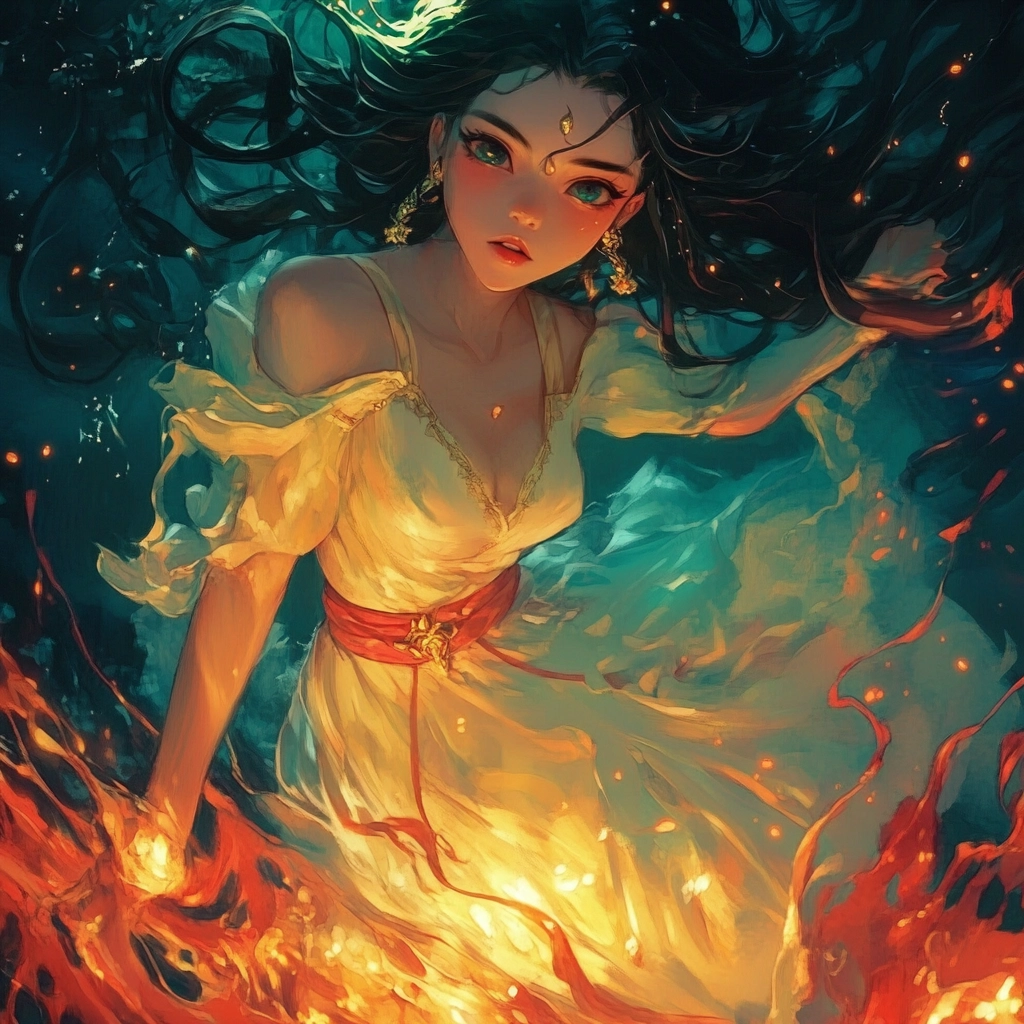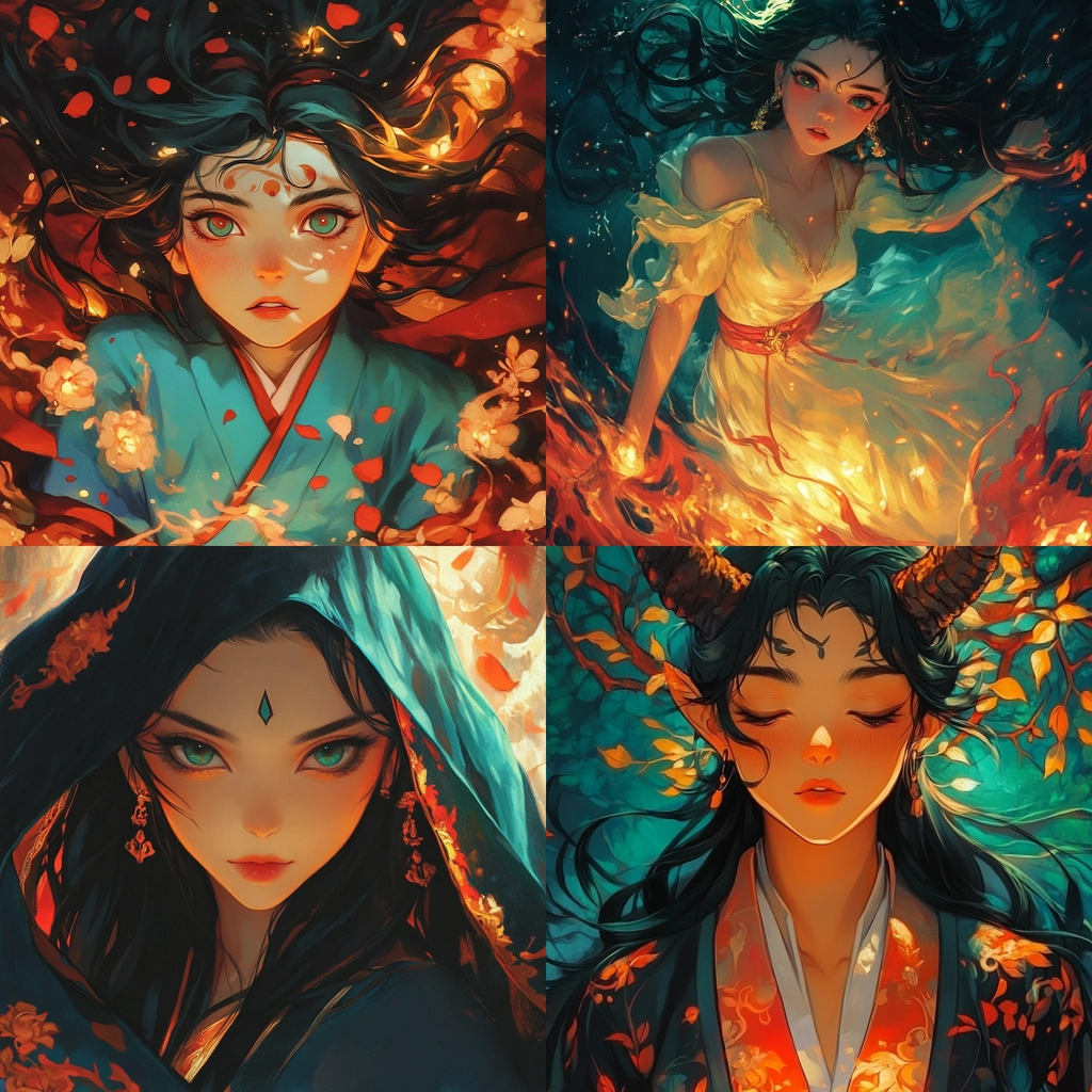 The lighting creates dramatic effects, with highlights defining contours and depth. Vibrant colors are expertly blended, offering bold contrast against darker backgrounds. The sense of movement is enhanced by swirling patterns and flowing textures.