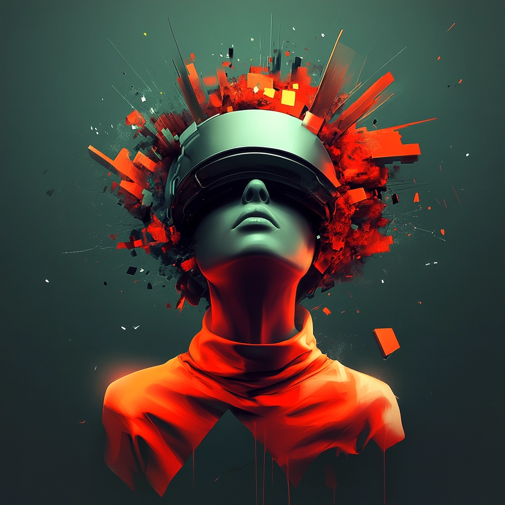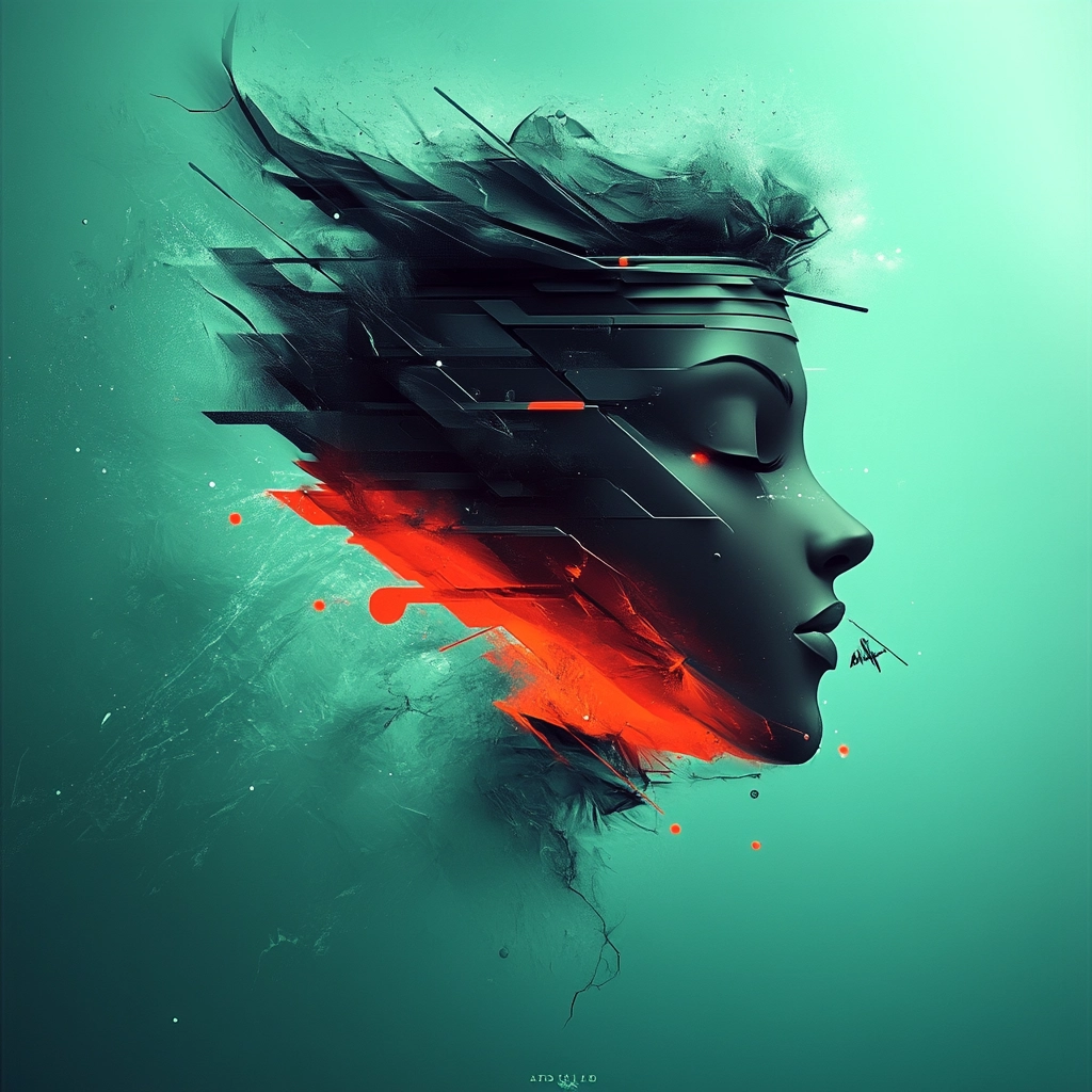 Strong contrast between vibrant red and dark hues. Sharp edges and soft gradients merge, providing depth and dimensionality. Glossy finish suggests a futuristic texture.