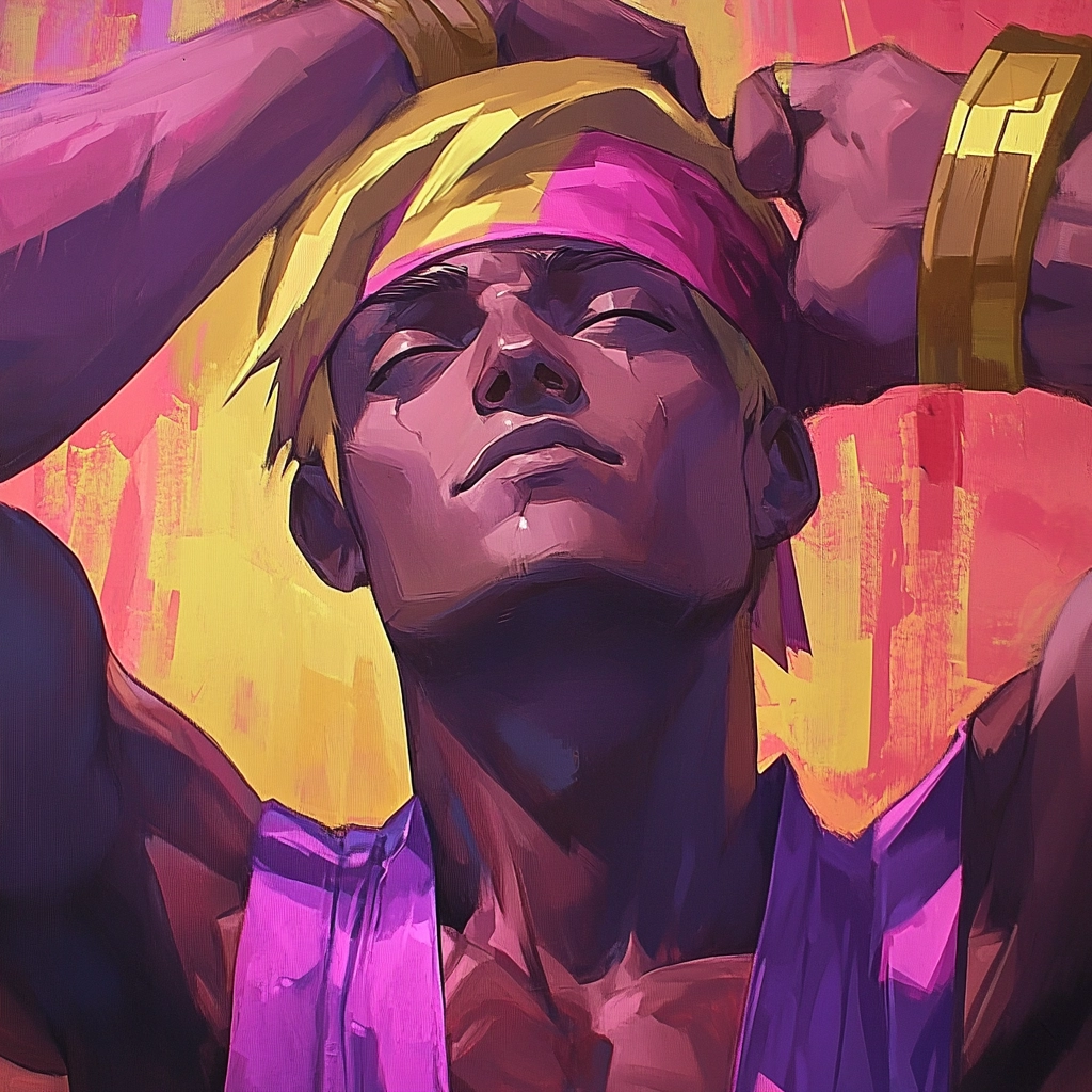 Bold use of vibrant colors with strong lighting effects and detailed texture.