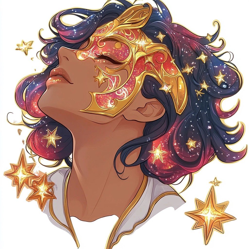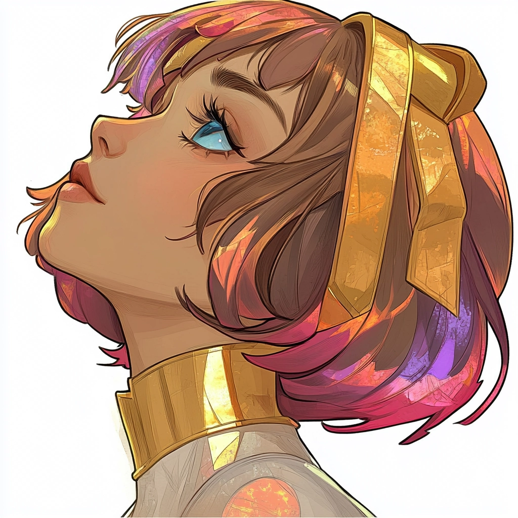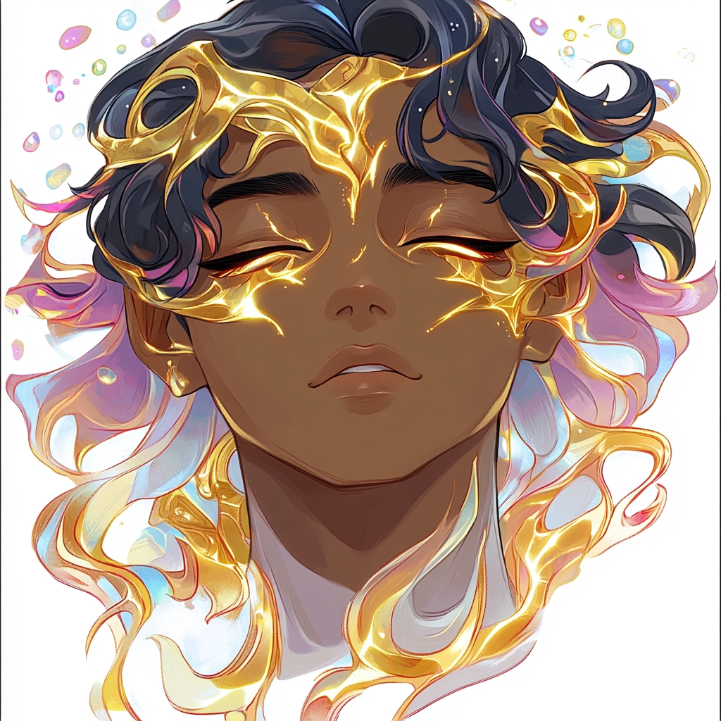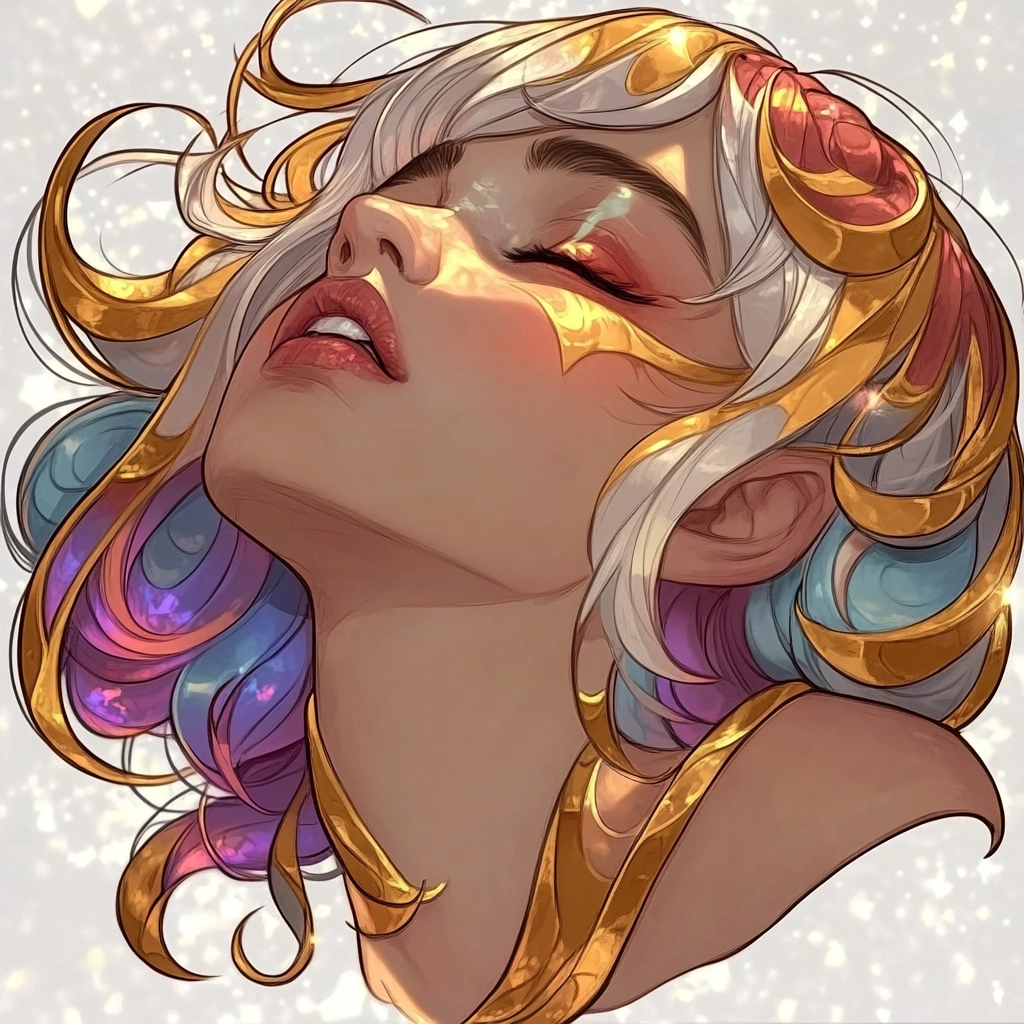 The lighting accentuates golden highlights, creating a shimmering effect that contrasts with vivid darker hues. Color transitions are smooth, blending dark blue and pink seamlessly, while textures range from fluid to sharp, suggesting opulence.