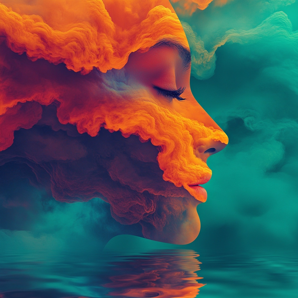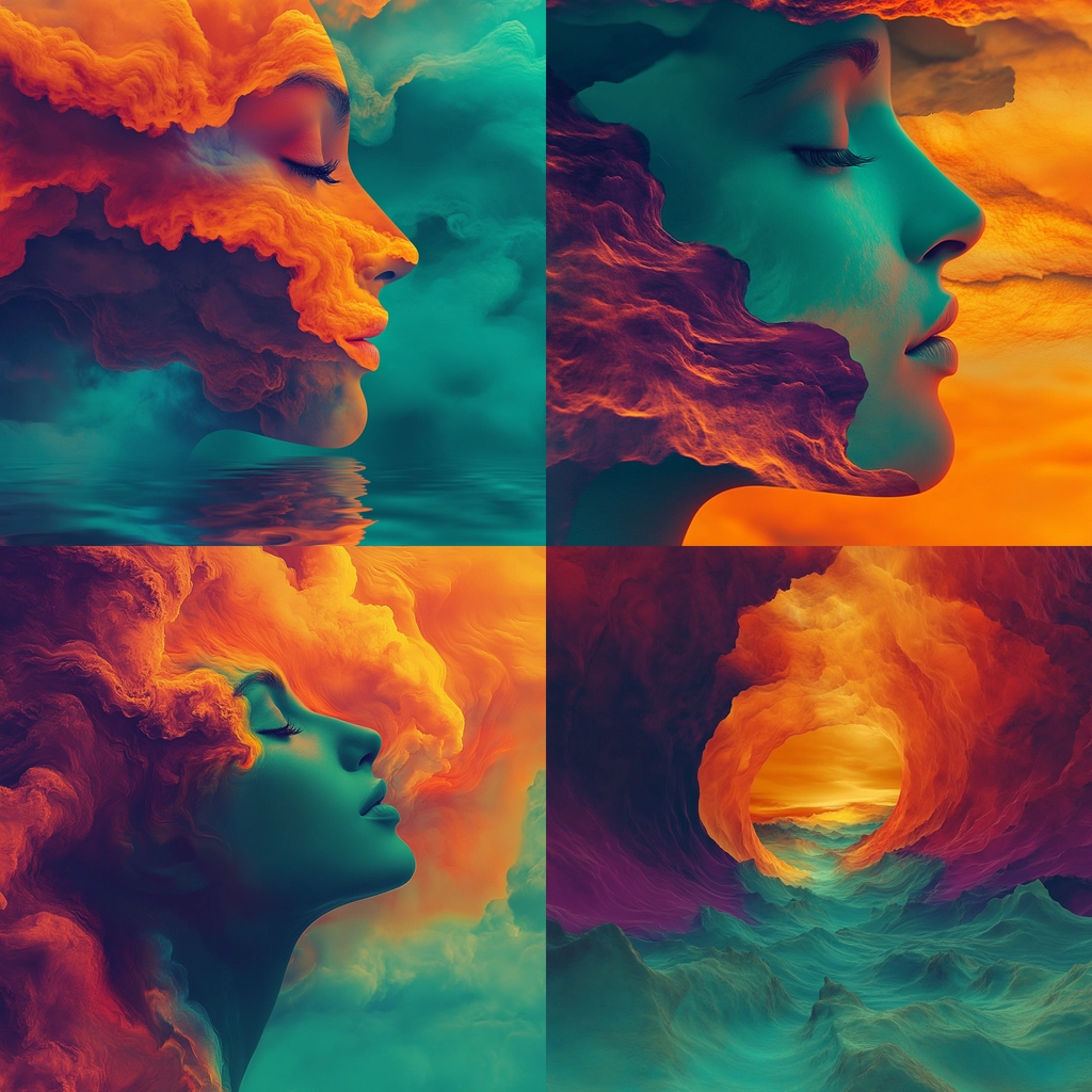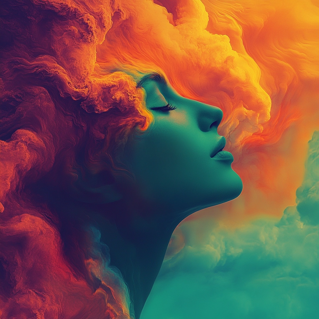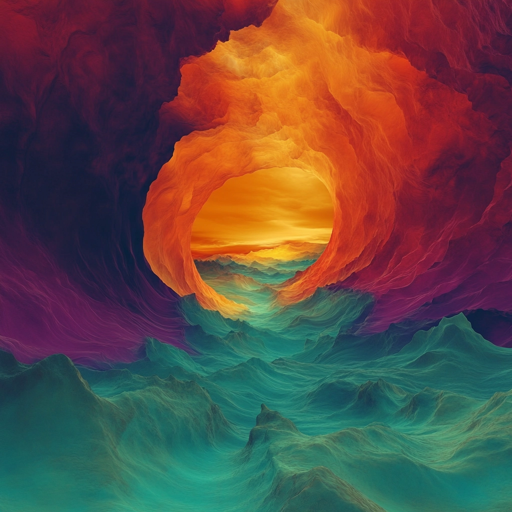 Soft and diffused lighting enhances the vibrant hues, creating a dynamic yet harmonious interplay of warm and cool tones. The smooth textures suggest fluidity, while the spatial composition adds depth, drawing the viewer into a recurring dialogue between color and form.