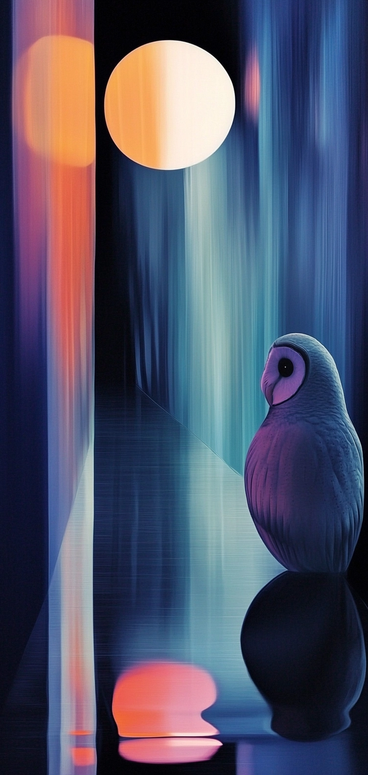 Lighting contrasts highlight forms against gradient backgrounds. Colors vary from intense to soft shades, establishing an expansive spatial sensation. The smooth texture enhances the visual journey.
