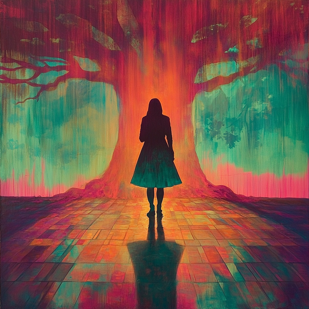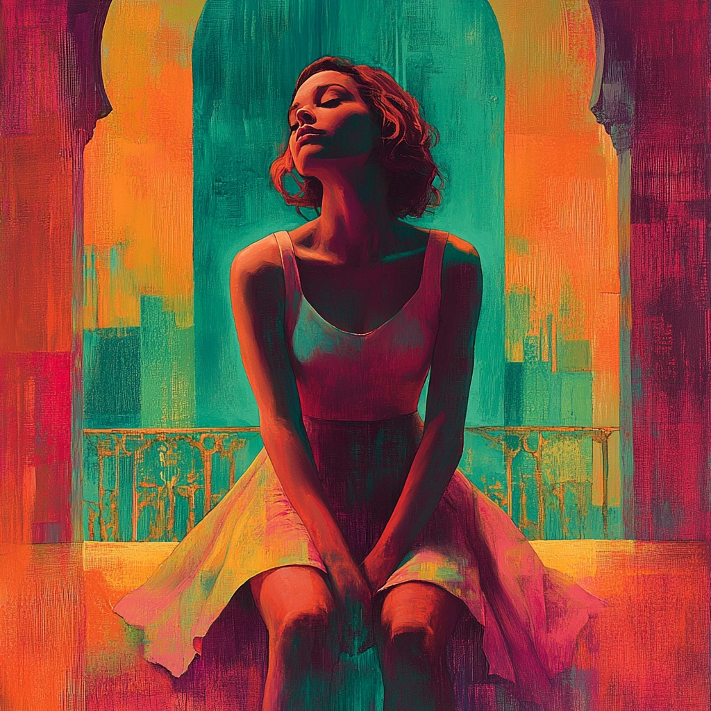 The lighting effects spotlight vivid color transitions with precise interplay between warm orange and cool cyan tones. Spatial sense is developed by gradient shifts and layered brush textures that generate depth and visual intrigue across compositions.